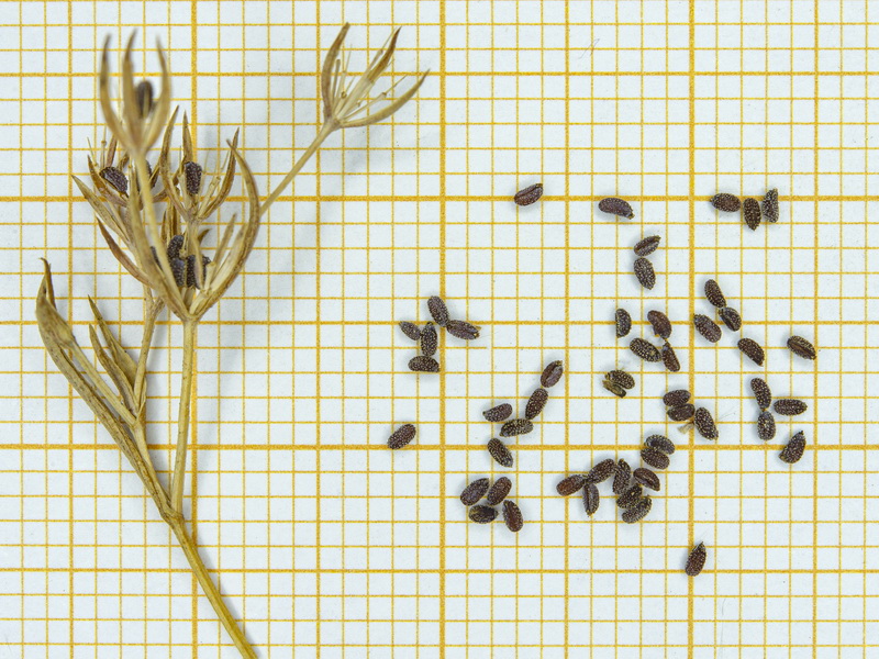 Früchte kahl, 2 mm im Durchmesser, aus 2 einsamigen Fruchtblättern bestehend