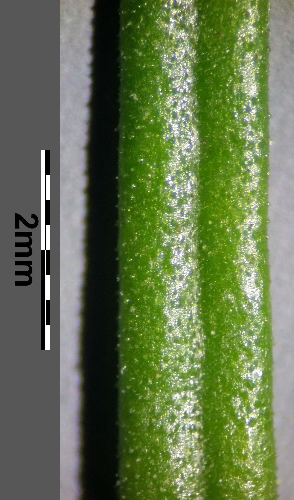 2 Stängel im mittleren und oberen Teil kurzhaarig, Blätter oberseits +/- dunkelgrün, zu 6 - 12, am Rand umgerollt, kahl oder behaart