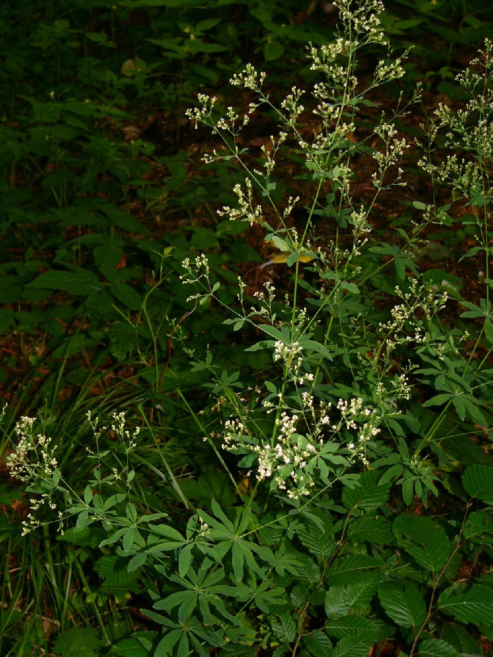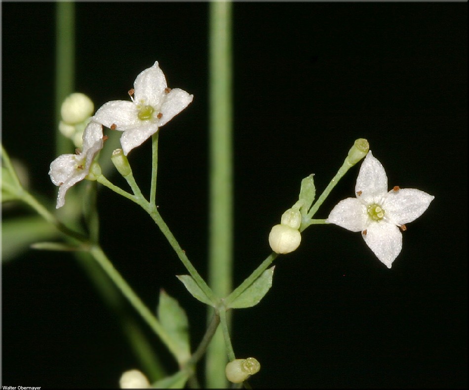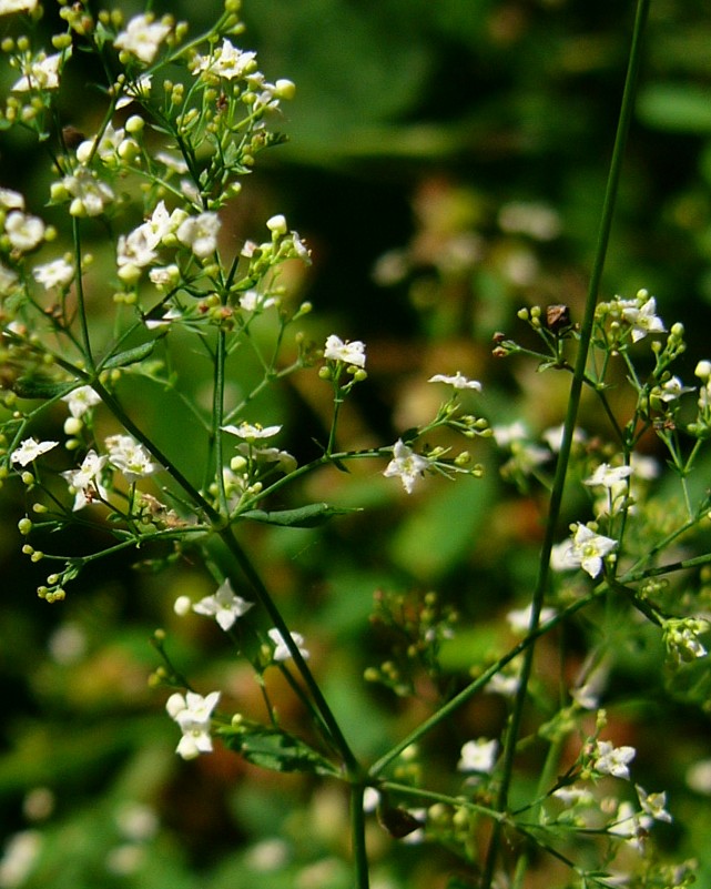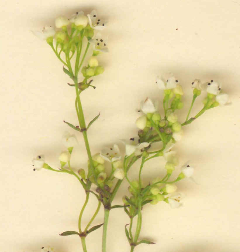 Blüten weiß, 2 - 3 mm im Durchmesser, radförmig