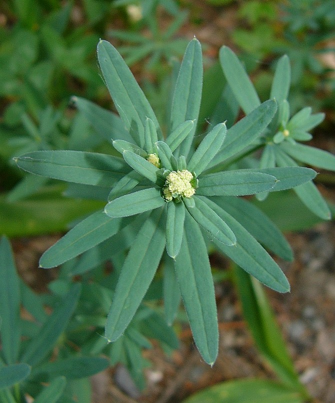 Blätter groß, zu 5 - 8 im Quirl, mit 1 Ader, eilanzettlich, 4 - 10 mm