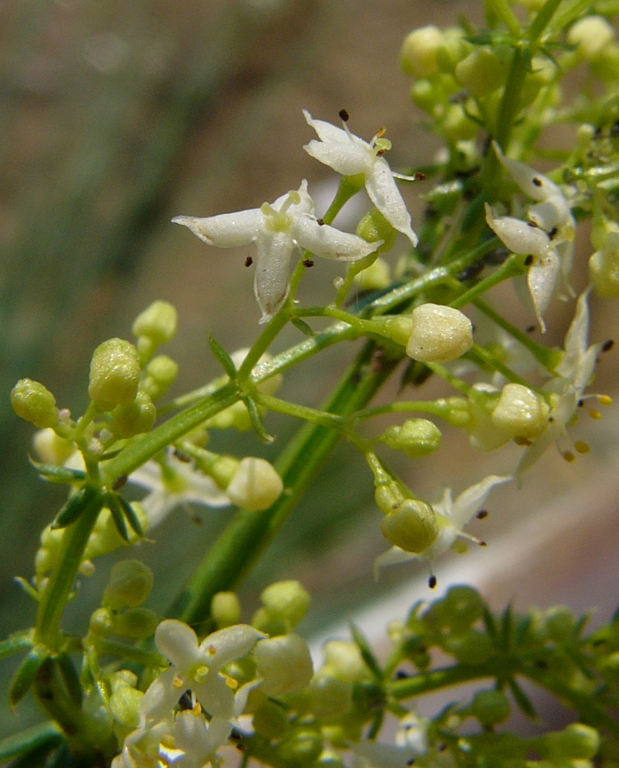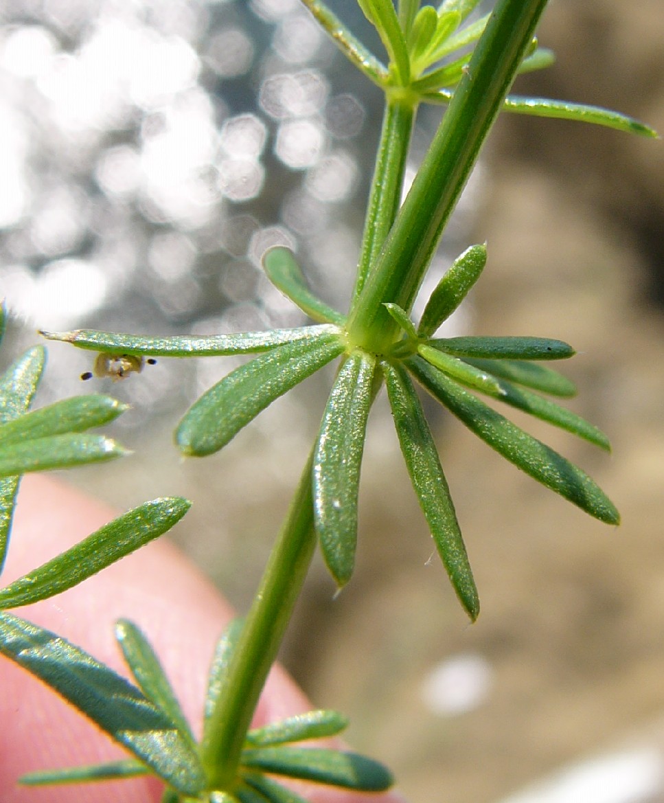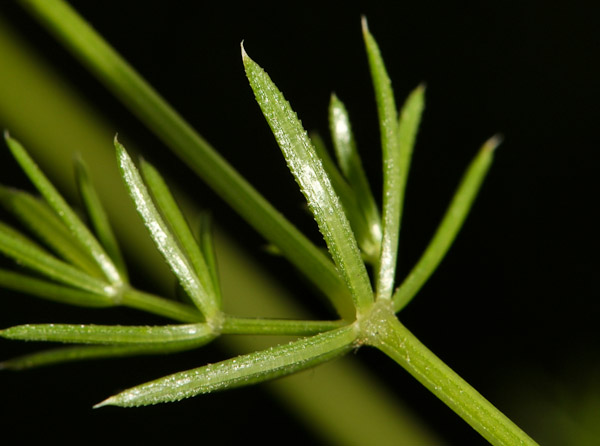 Blätter grün, 1 - 2 mm breit, am Rand rau, zu 5 - 11 im Quirl, mit 1 Ader