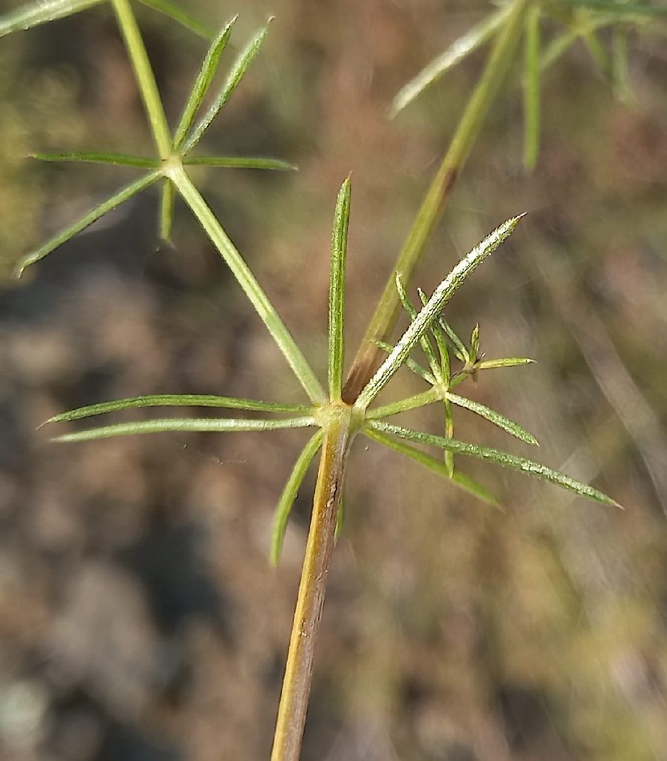 radförmig, Kronzipfel begrannt, Blätter 0,5 - 2 mm breit, Stängel im oberen