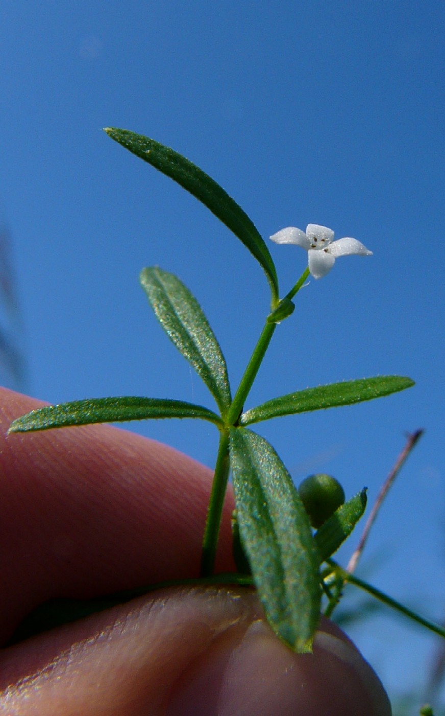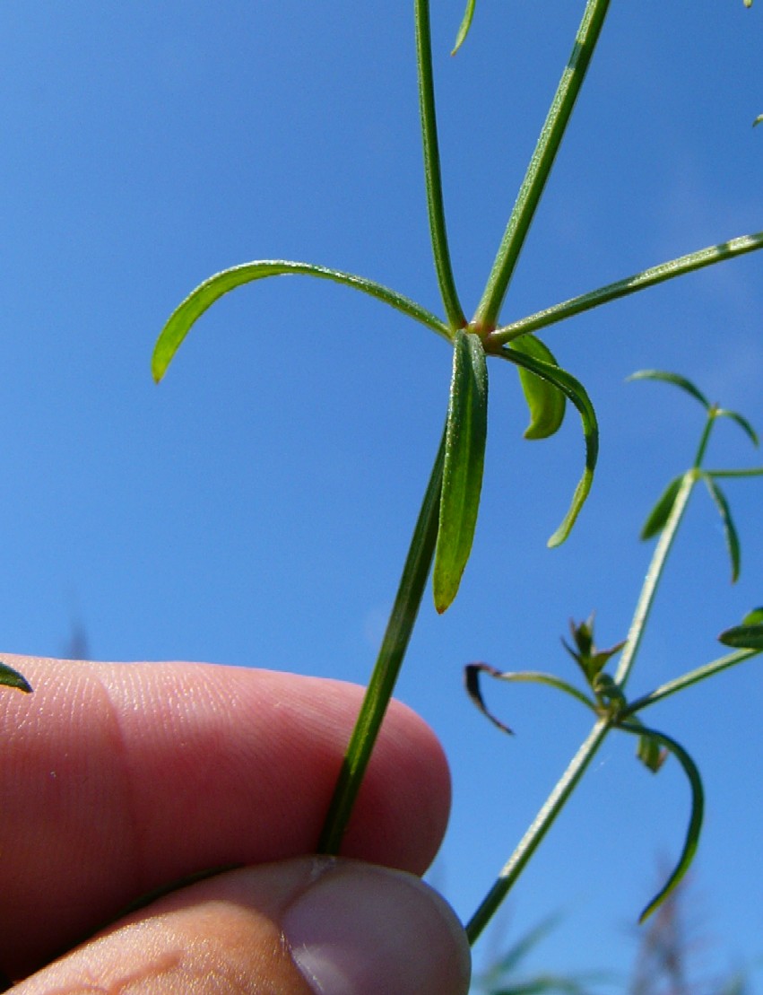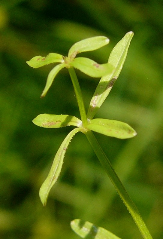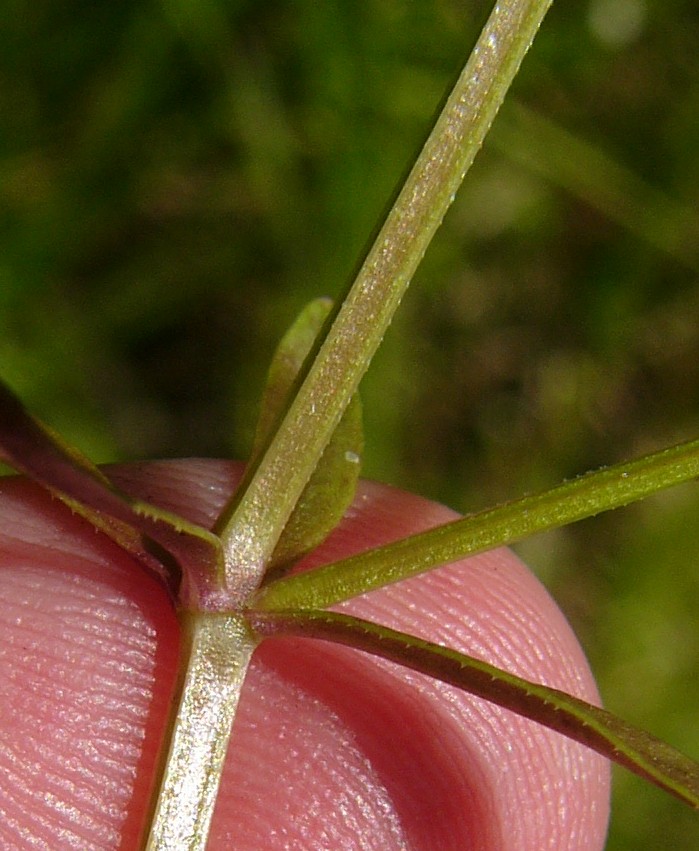 2 Blätter 2 - 6 mm breit, Stängel mit nach unten gerichteten, kleinen Stacheln