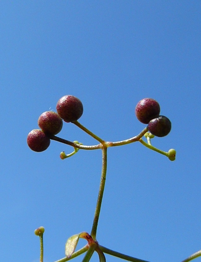 Reife Früchte schwarz, kahl, papillös, 2 mm im Durchmesser