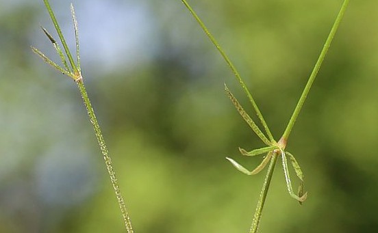 mit langen Internodien, Blätter kahl, linealisch, zu 5 - 8 im Quirl, mit 1 Ader, mit