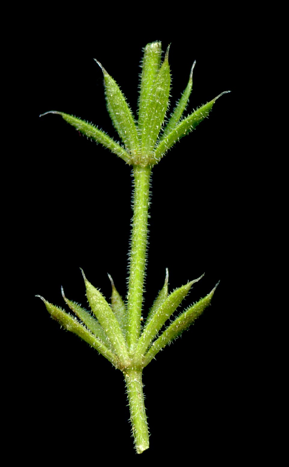 Stängel kahl, ohne Stacheln, Blätter kahl, linealisch, zu 5 - 8 im Quirl, mit 1 Ader, mit
