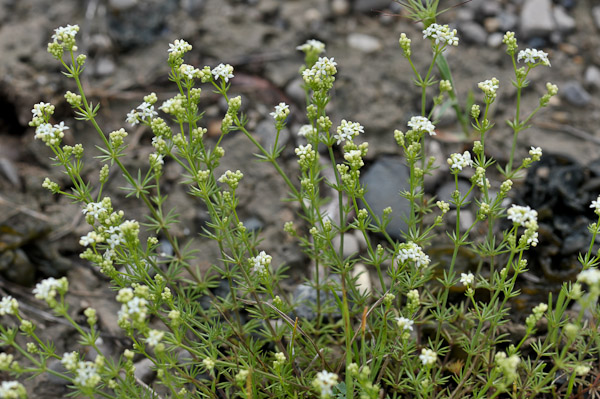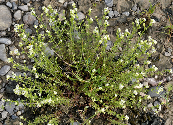 Blüten 1,5 - 2 mm im Durchmesser, weiß, radförmig, ohne Granne