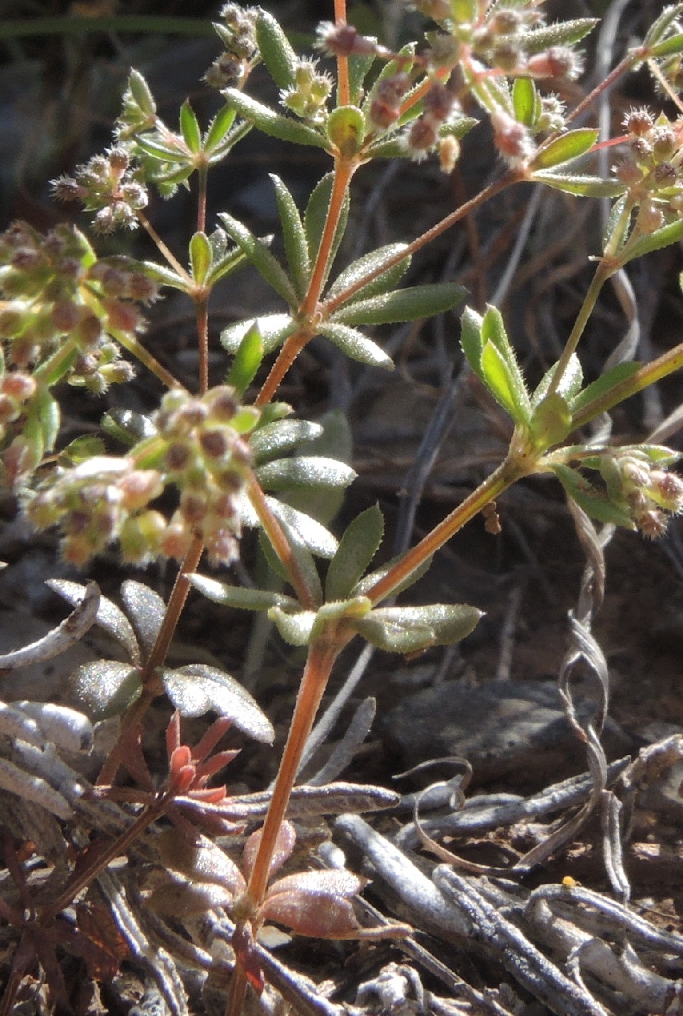 Blätter zu 8 - 12 im Quirl, 5 - 15 mm lang, 0,5 - 1,5 mm breit, mit bis zu 0,5 mm langem häutigem Spitzchen, am Rand umgerollt, mit vorwärts gerichtete Zähnchen, kahl oder behaart