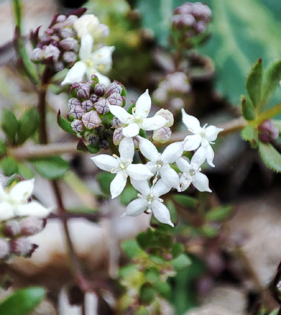 Krone grünlich- weiß, radförmig, 2 - 3 mm im Durchmesser,
