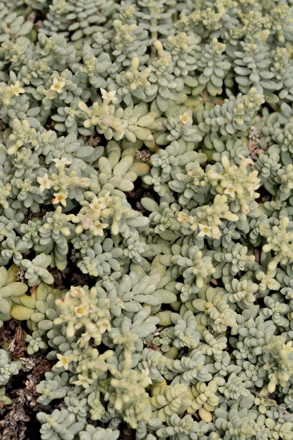 kräftig Blütenstand mit vielen Seitenästen, die mehrblütige büschelige Teilblütenstände tragen Blätter 12 - 15 mm lang, blaugrün, +/- flach > 1