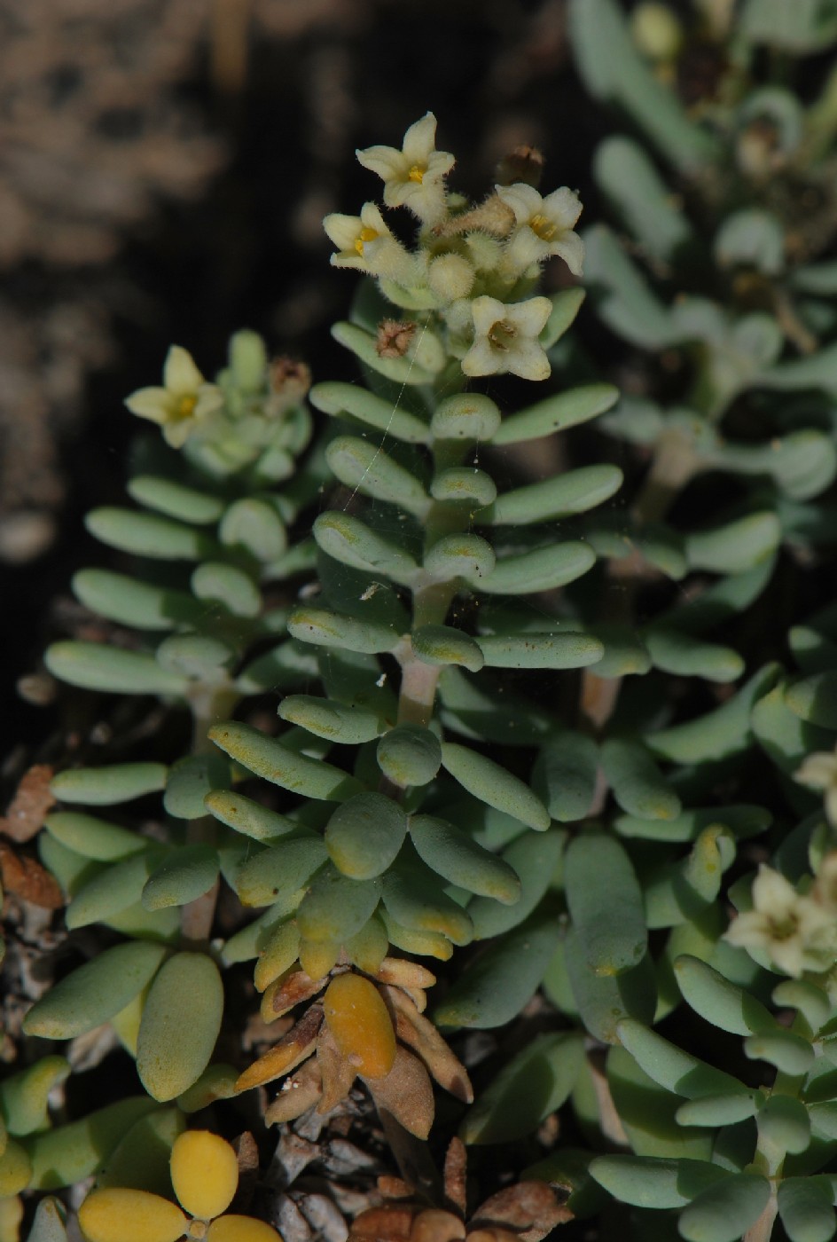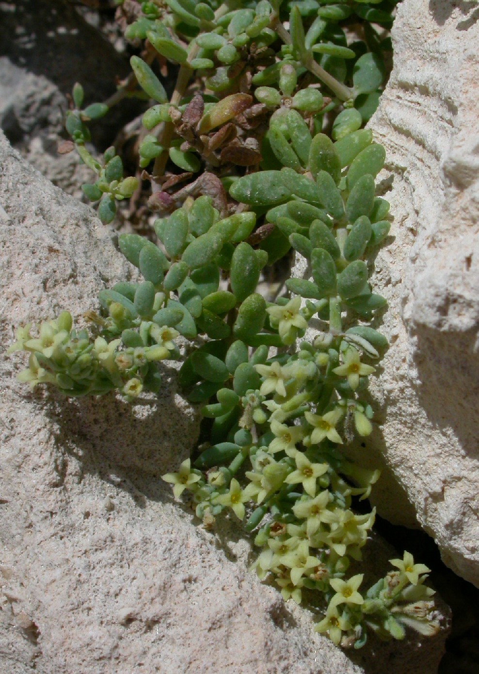 kriechend, Blüten einzeln oder zu mehreren in den Achseln der Blätter Blätter 5 - 6 mm lang, +/ umgerollt, dadurch fleischig wirkend > 2