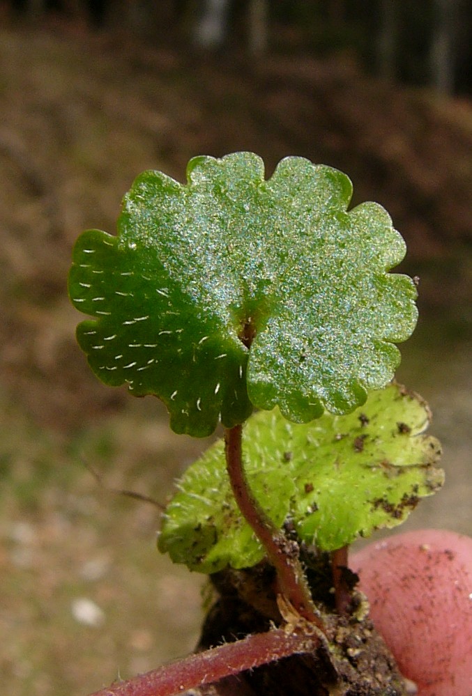 Blätter gegenständig, nierenförmig, undeutlich gekerbt