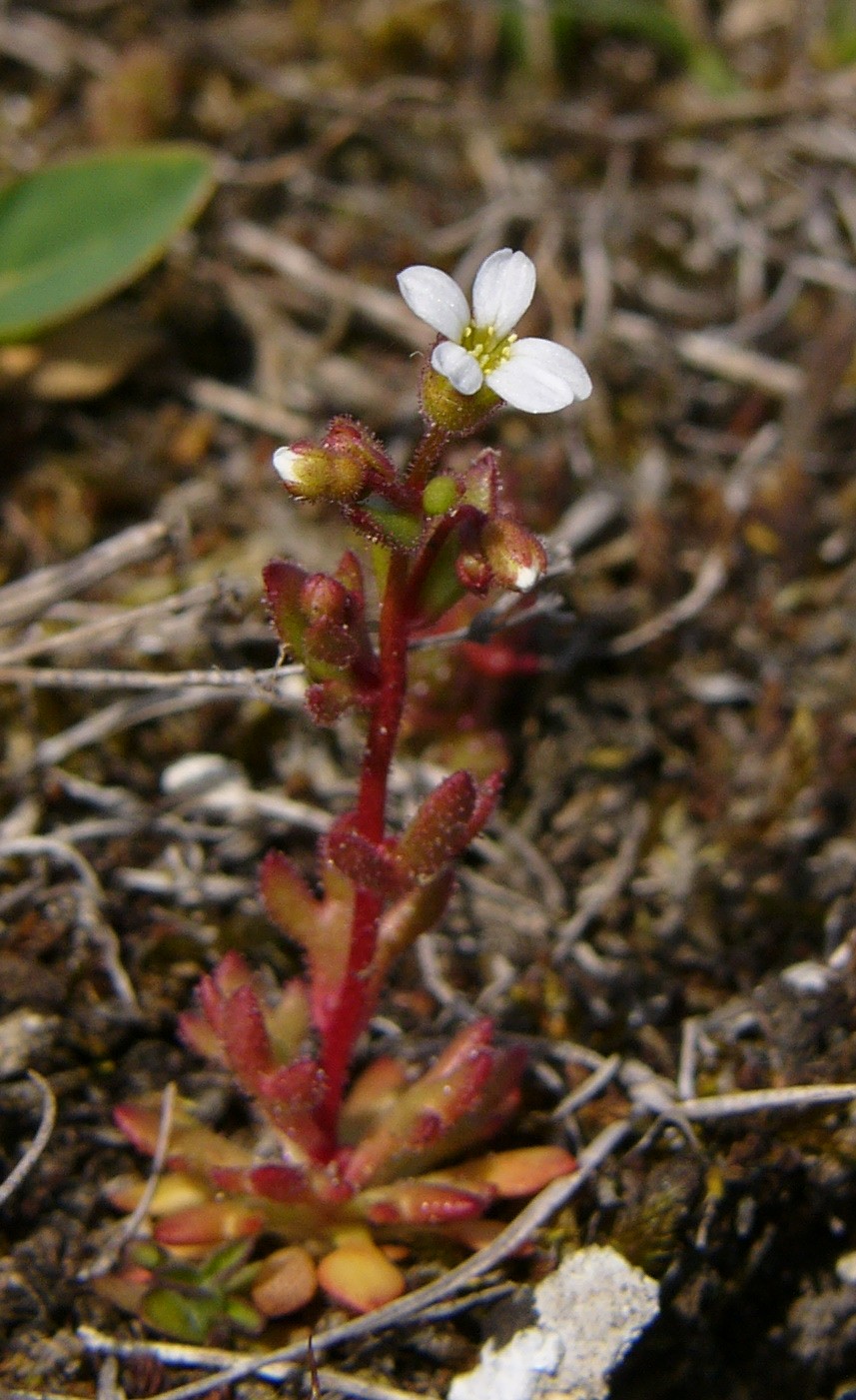 Kronblätter weiß, 2 - 4 mm lang Kelch drüsig, Stängel drüsenhaarig, meist rot