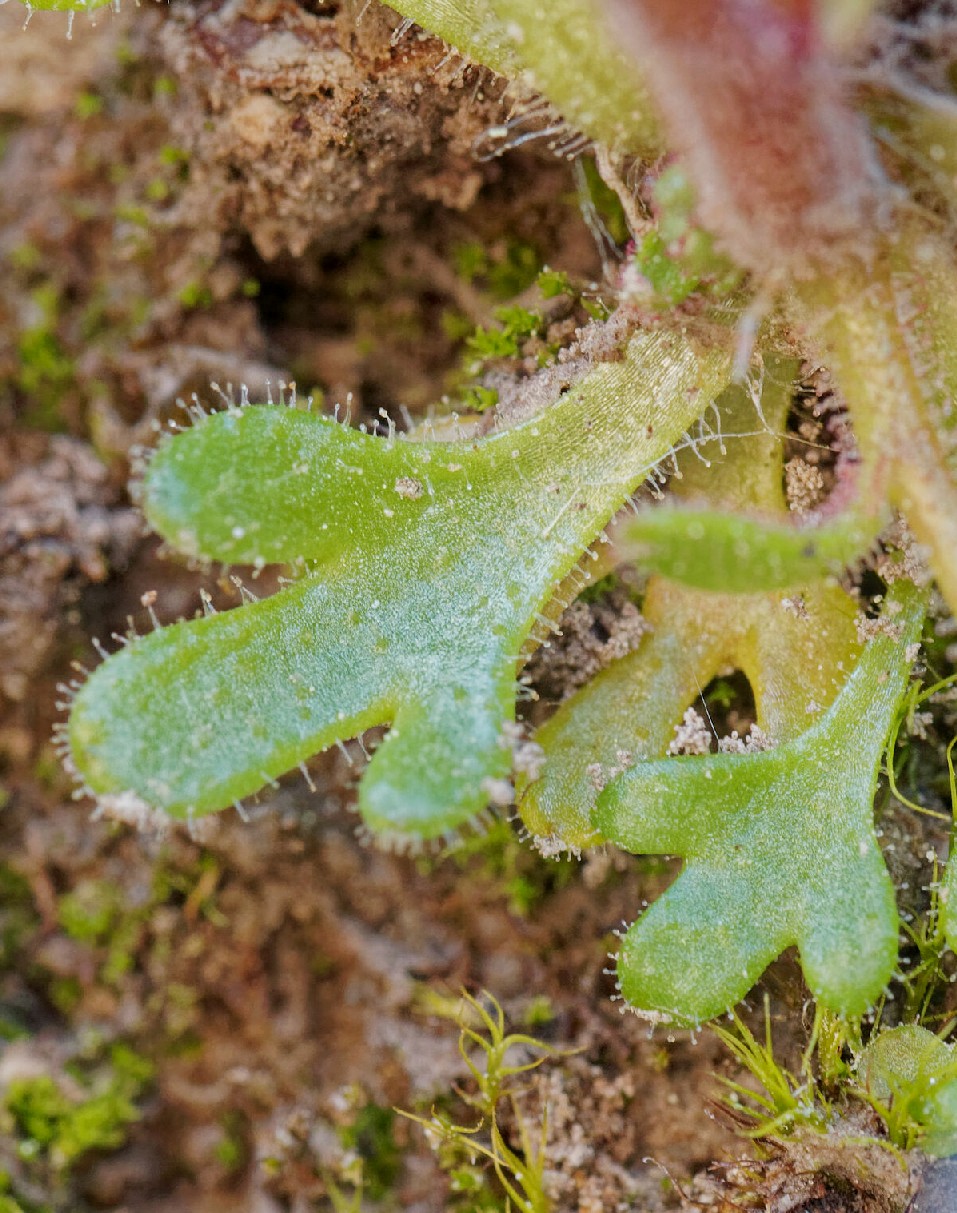 Mittlerer Lappen der Grundblätter 1 - 4 mm lang, 1 - 2 mm breit, eiförmig, stumpf, drüsig
