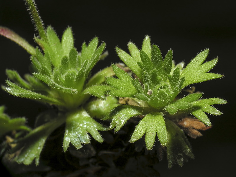 Kronblätter abgerundet, innen kahl, 4 - 10 mm lang, Blätter weich, 3- lappig, nicht kalkausscheidend,