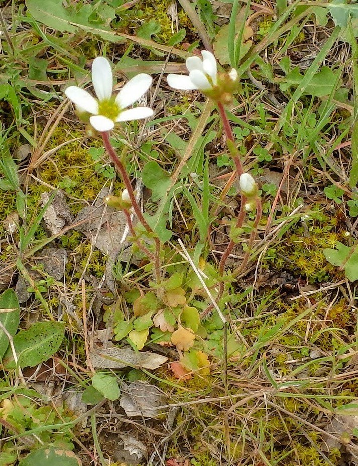 Grundblätter rundlich oder nierenförmig, am Grund herzförmig, lang gestielt