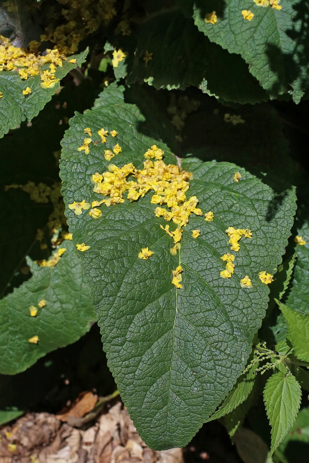 Blätter breit elliptisch, am Grund herzförmig, am Rand stumpf gesägt oder gezähnt