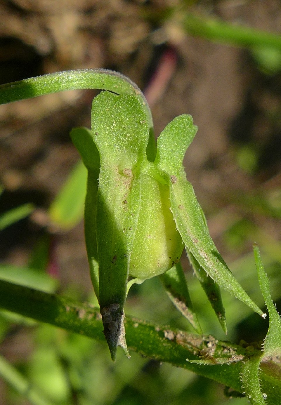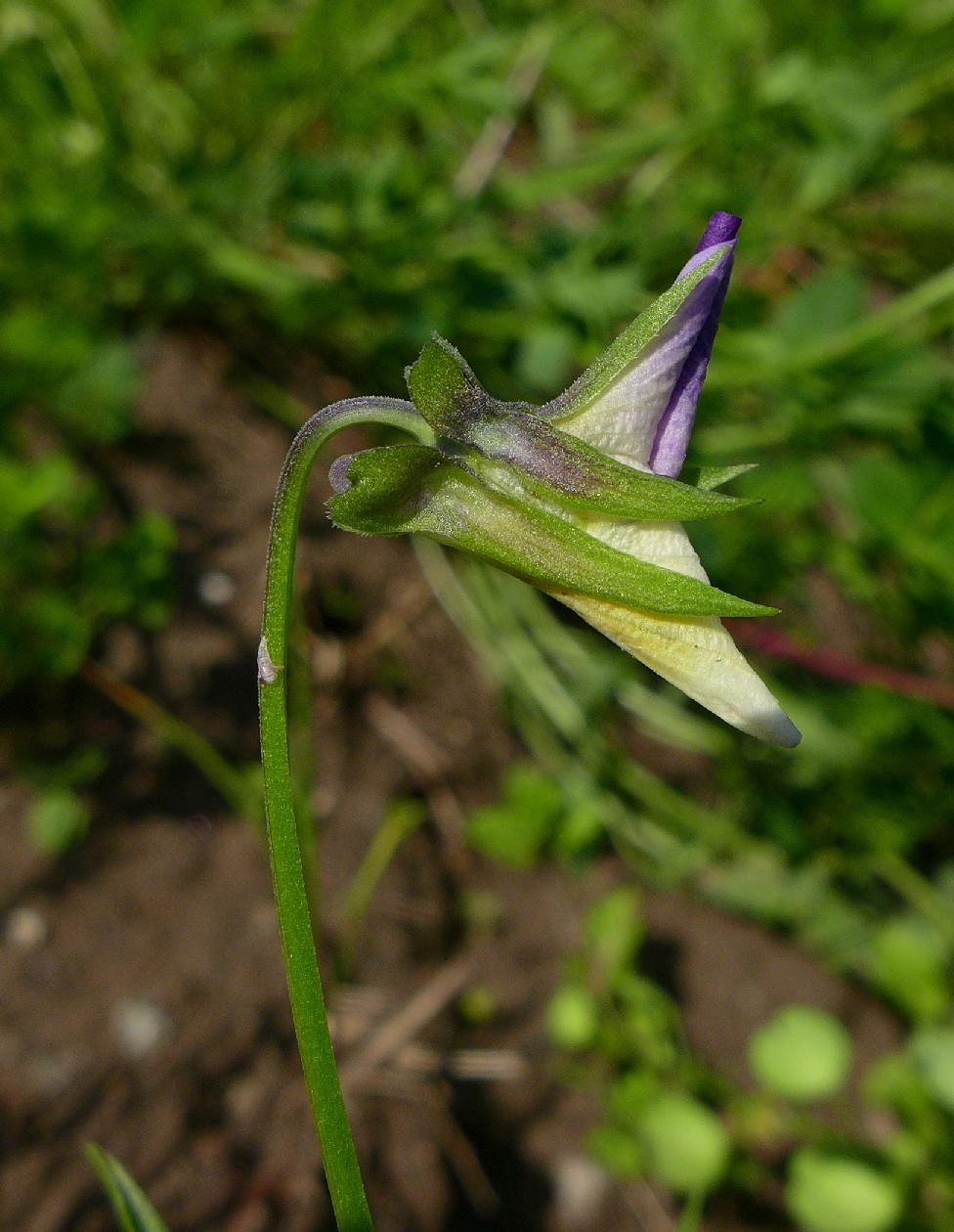 der Narbenkopfdurchmesser Kelchblätter lanzettlich, vorne spitz, Sporn 3 - 5 mm lang, wenig länger als die Kelchblattanhängsel, Stängel kahl oder kurz behaart, Vorblätter weit oberhalb der Mitte