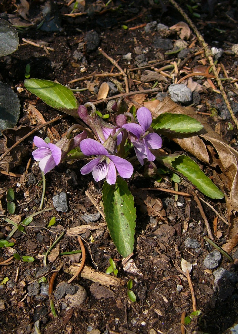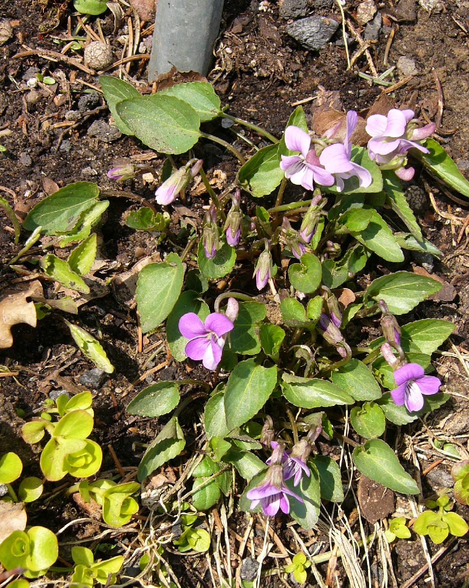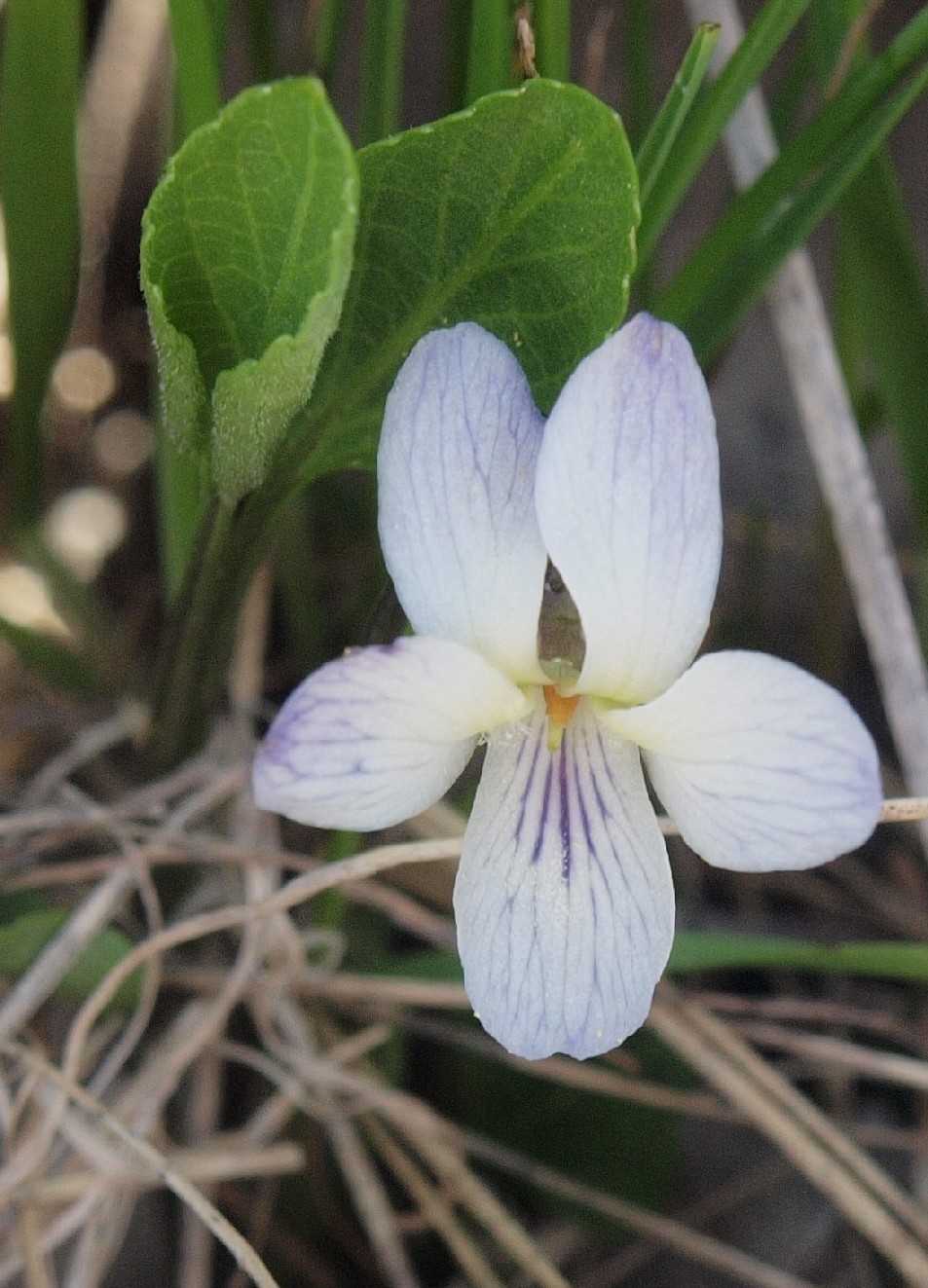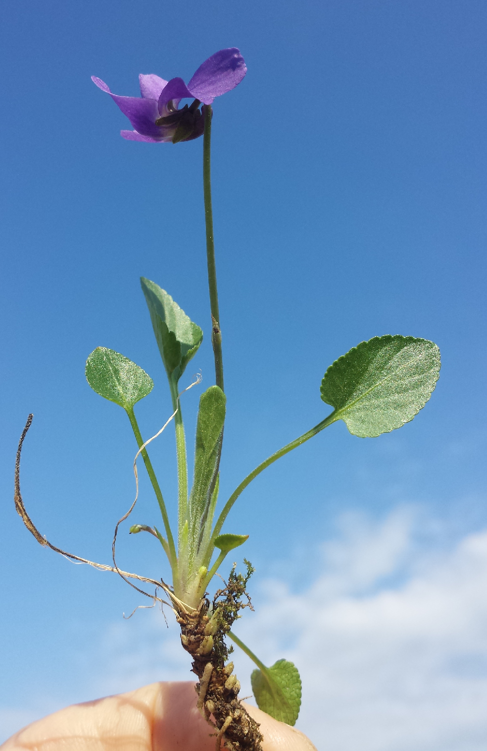 Viola - Blüten blau/violett, seitliche Kronblätter abwärts gerichtet, bebärtet, Sporn hell- oder dunkelviolett, Kelchblätter stumpf, Blätter +/- behaart, so lang oder länger als breit, Fransen der Nebenblätter nicht bewimpert