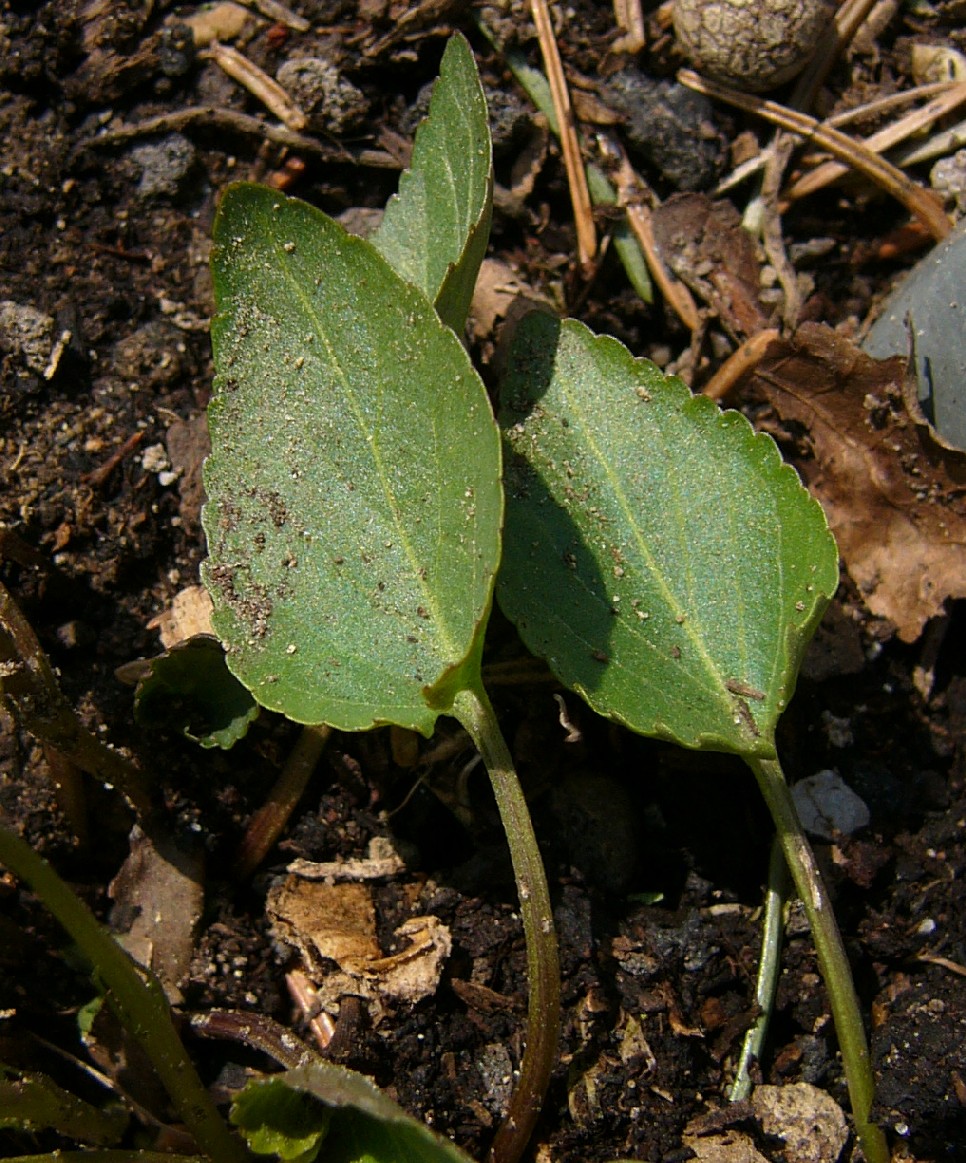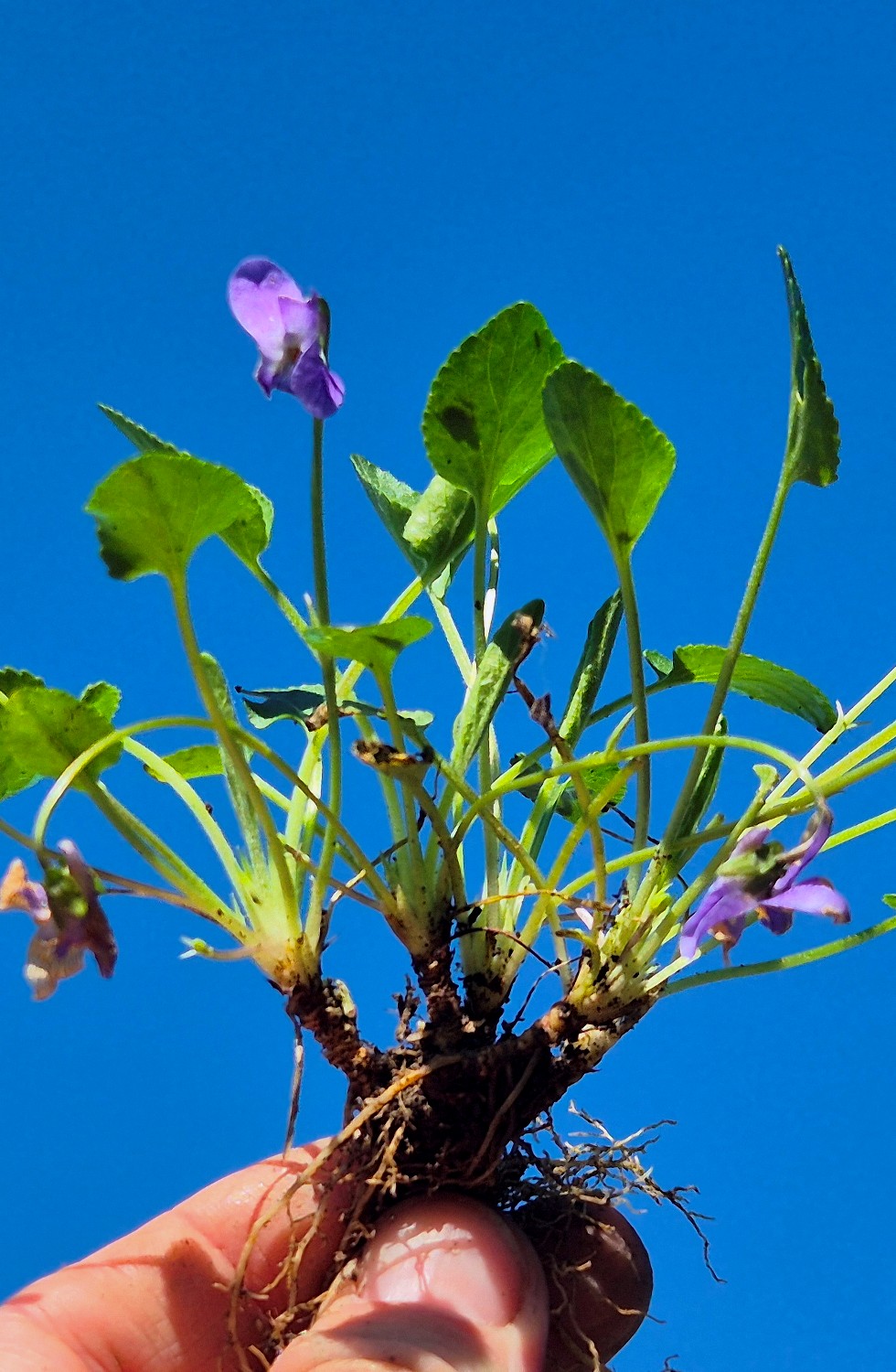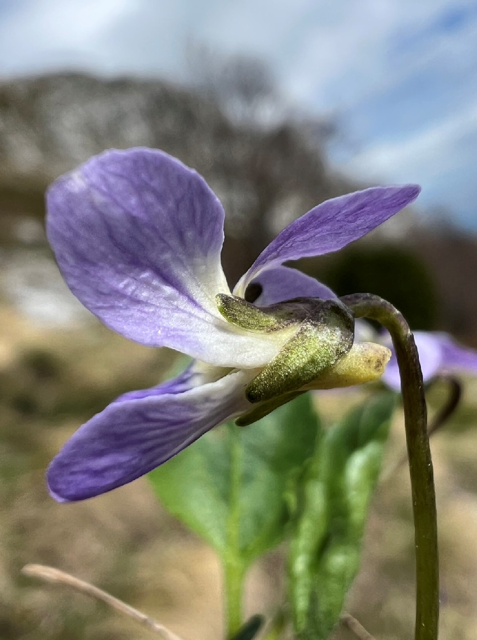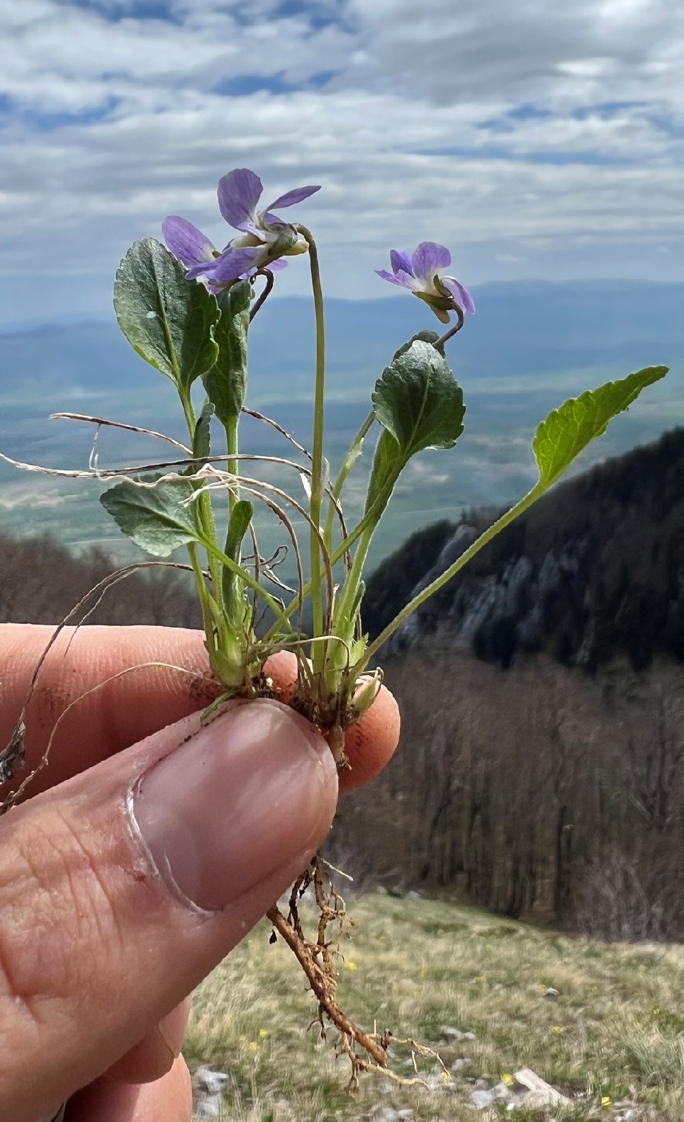 Viola - Blüten blau/violett, seitliche Kronblätter abwärts gerichtet, bebärtet, Sporn hell- oder dunkelviolett, Kelchblätter stumpf, Blätter +/- behaart, so lang oder länger als breit, Fransen der Nebenblätter nicht bewimpert