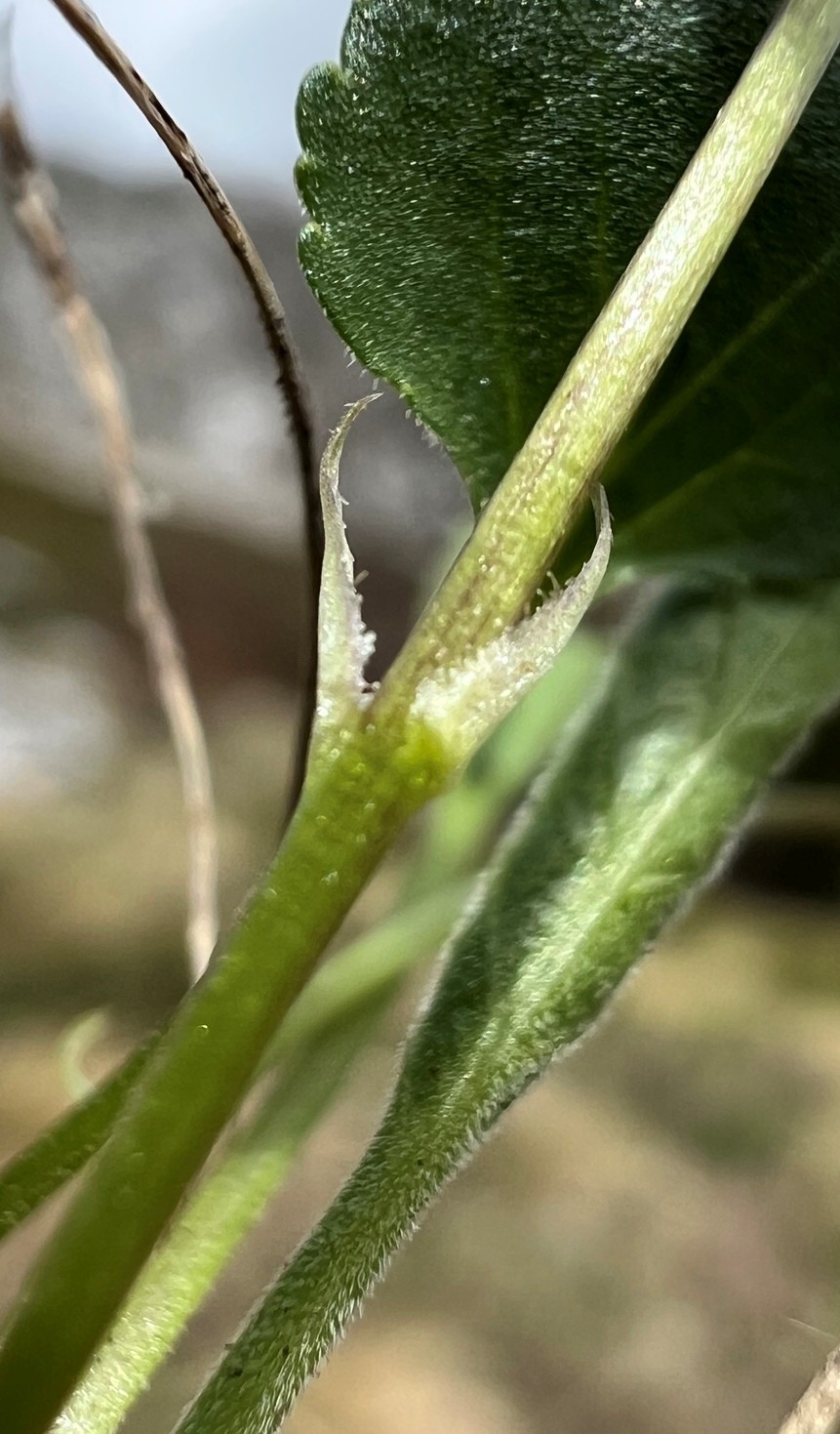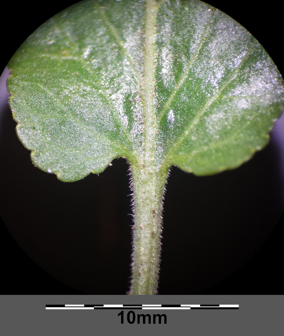 Blattstiel und Blätter unterseits behaart, später verkahlend