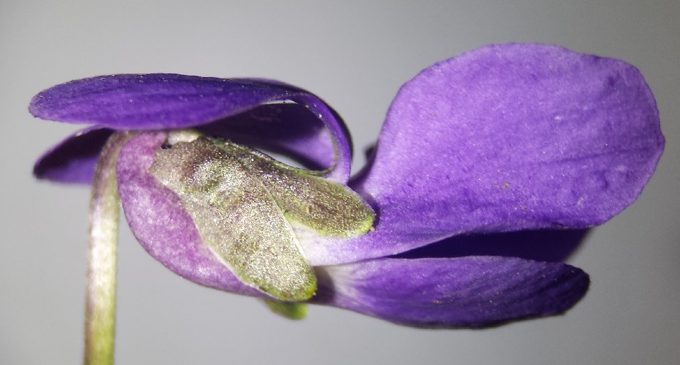 Kelchblätter eiförmig, stumpf, Sporn violett
