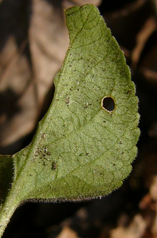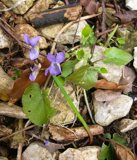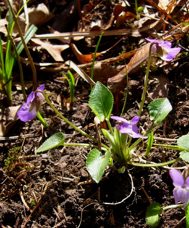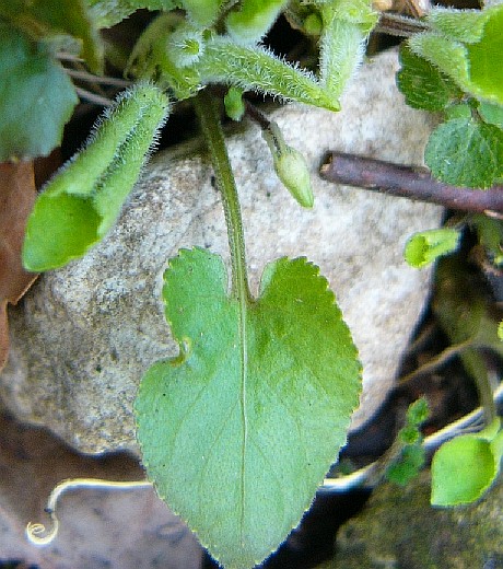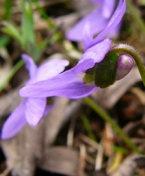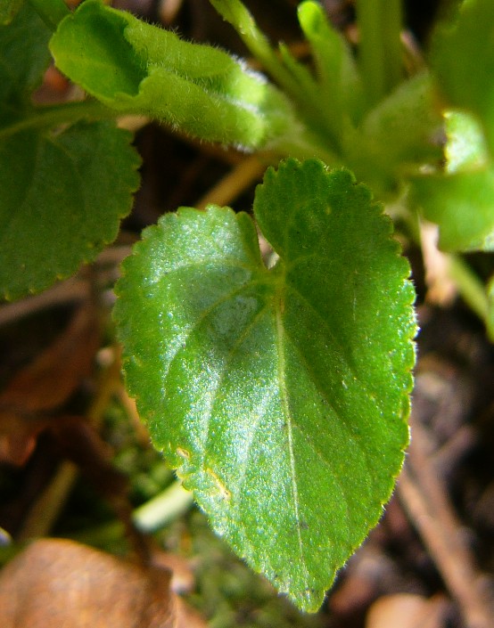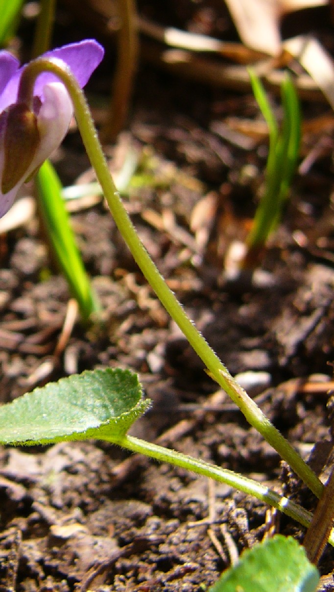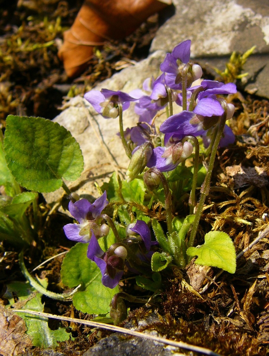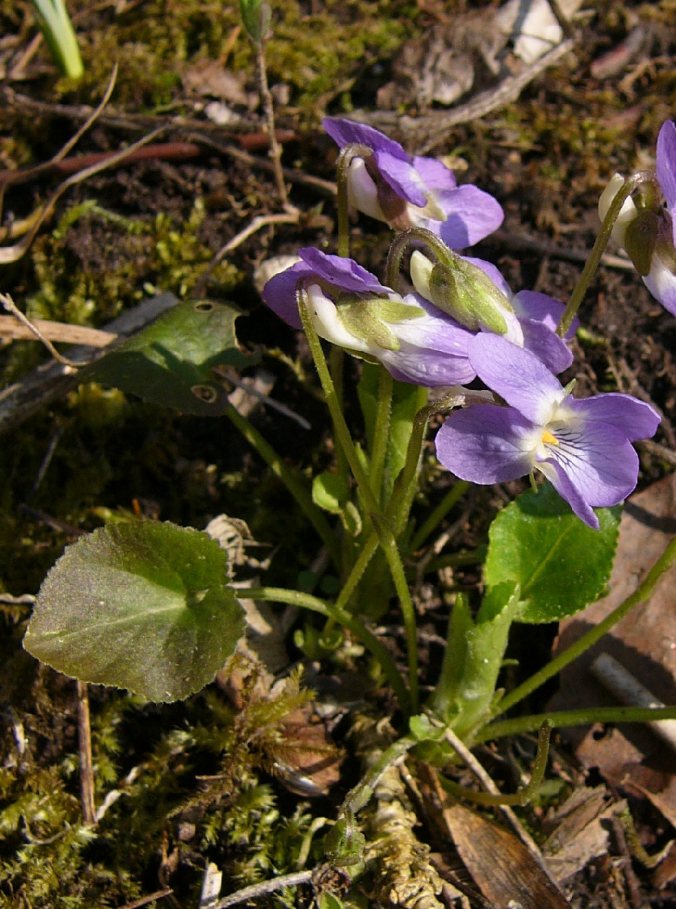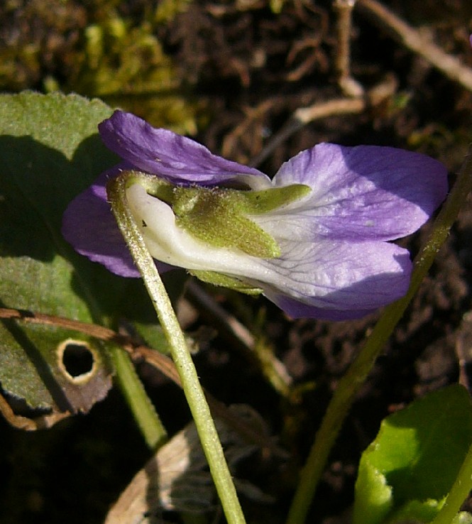 Viola - Blüten blau/violett, seitliche Kronblätter abwärts gerichtet, bebärtet, Kelchblätter stumpf, Blätter +/- behaart, so lang oder länger als breit, Sporn weiß oder hellviolett, Nebenblätter mit langen, bewimperten Fransen