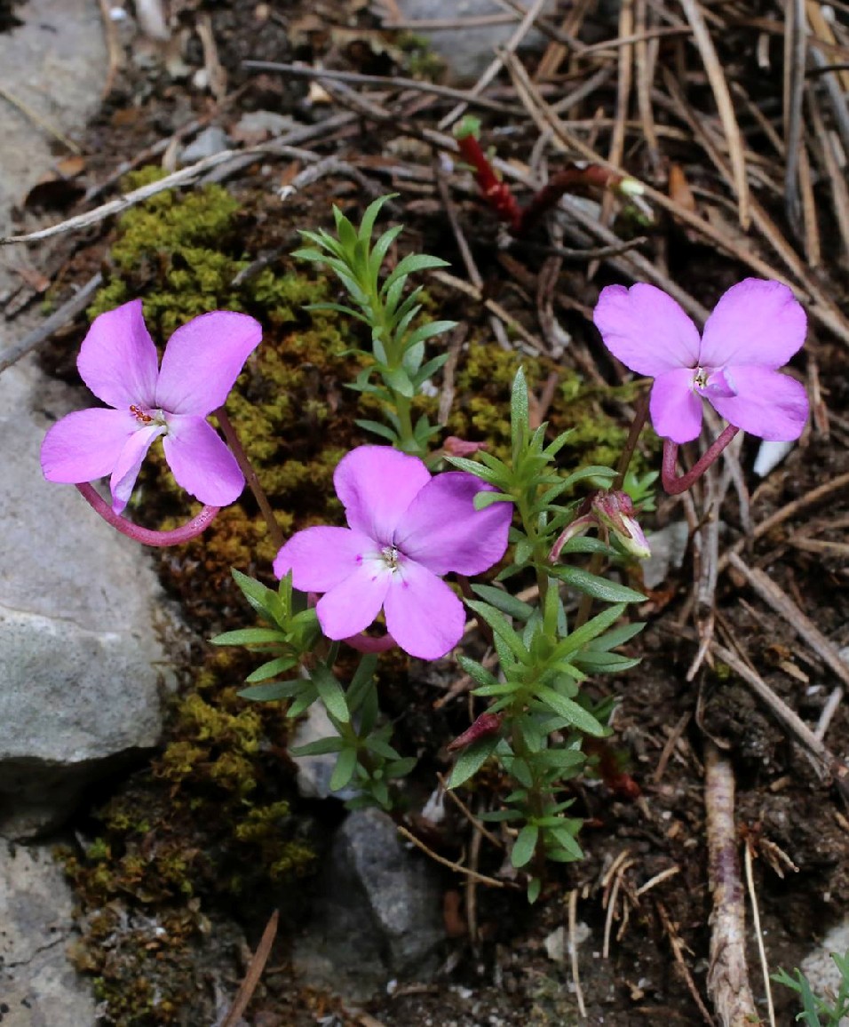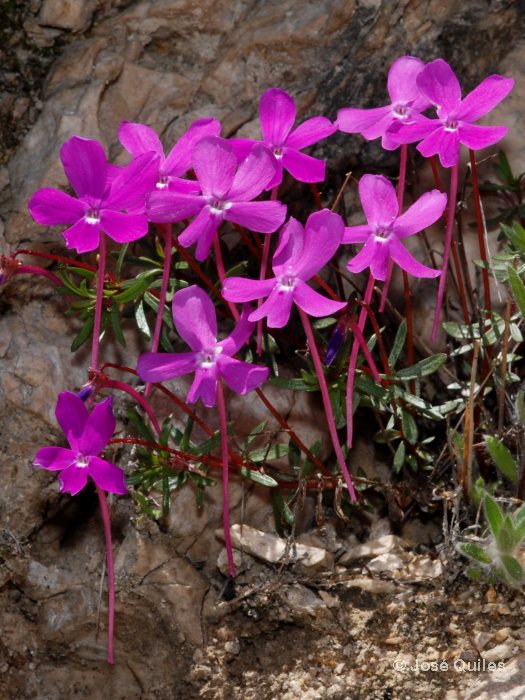 Blüten rosa oder rotviolett, Kronblätter breit eiförmig, unteres Kronblatt ausgerandet, alle oder einige am Grund mit rotem Punkt, Schlund weißlich