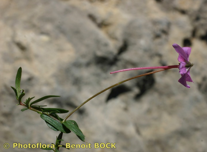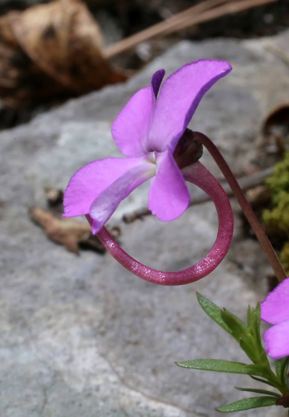Blütenstiel bis 6 cm lang, rot, Sporn sehr schlank, 20 - 30 mm lang