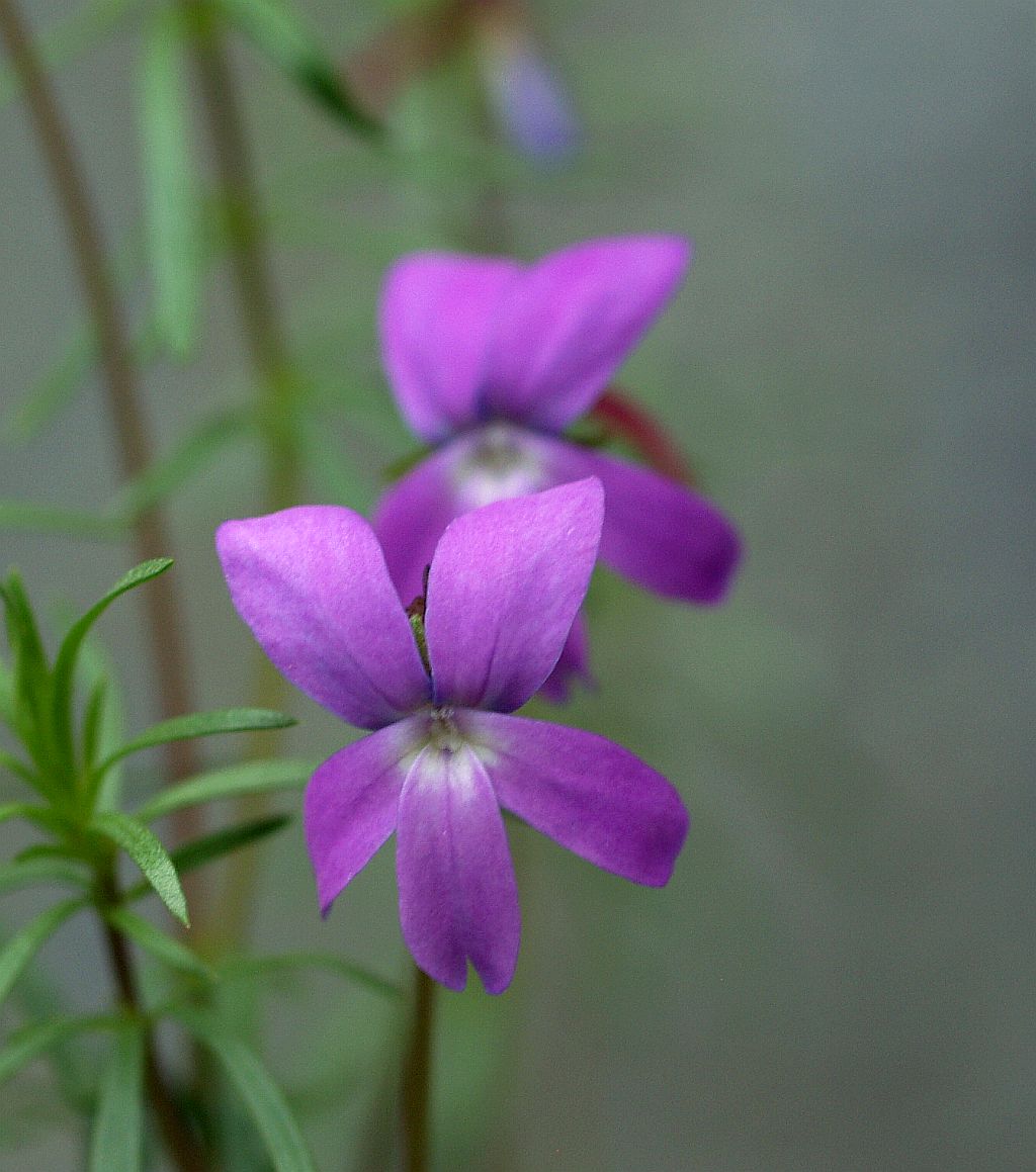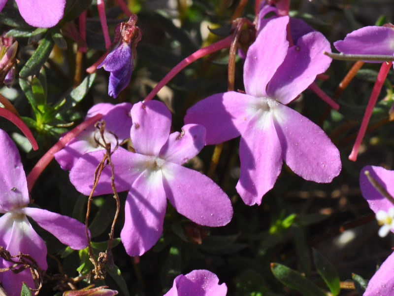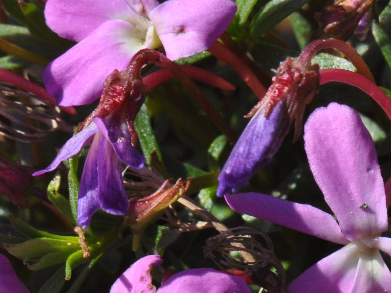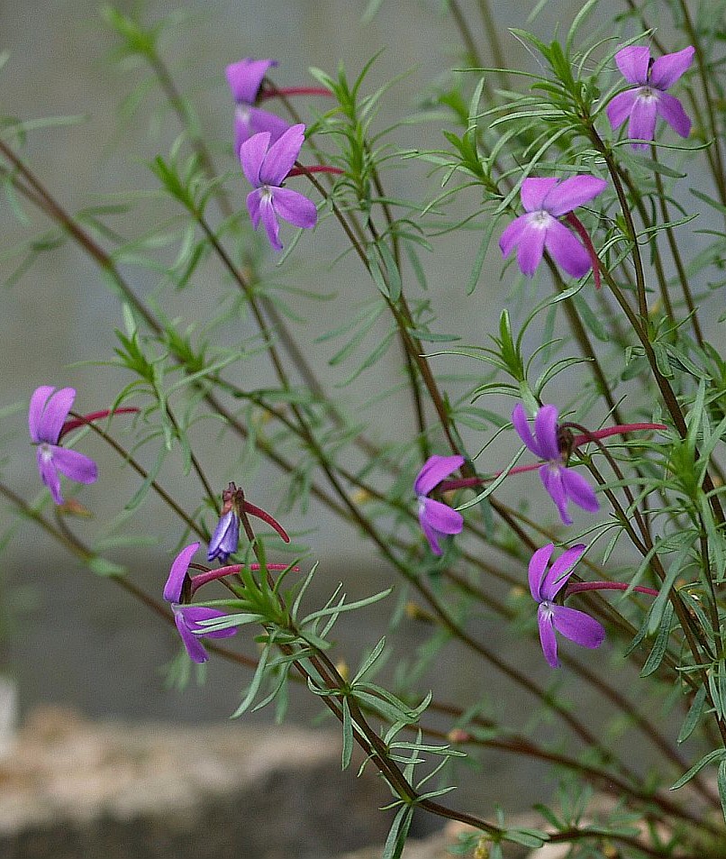 Blüten rotviolett, Kronblätter schlank, alle oder