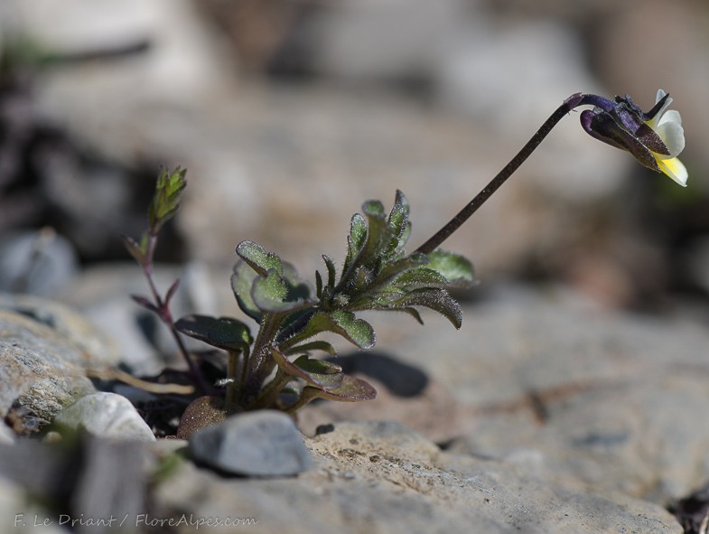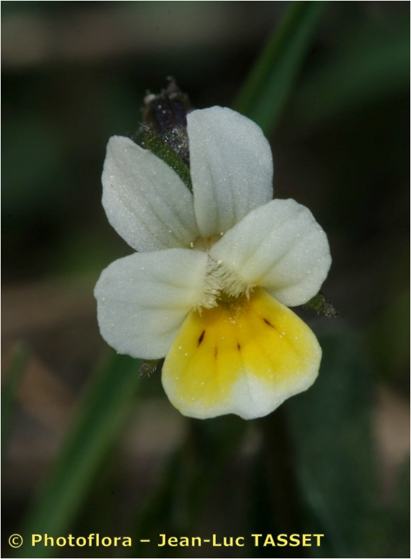 Die oberen Kronblätter cremefarben oder hellviolett, die unteren gelb