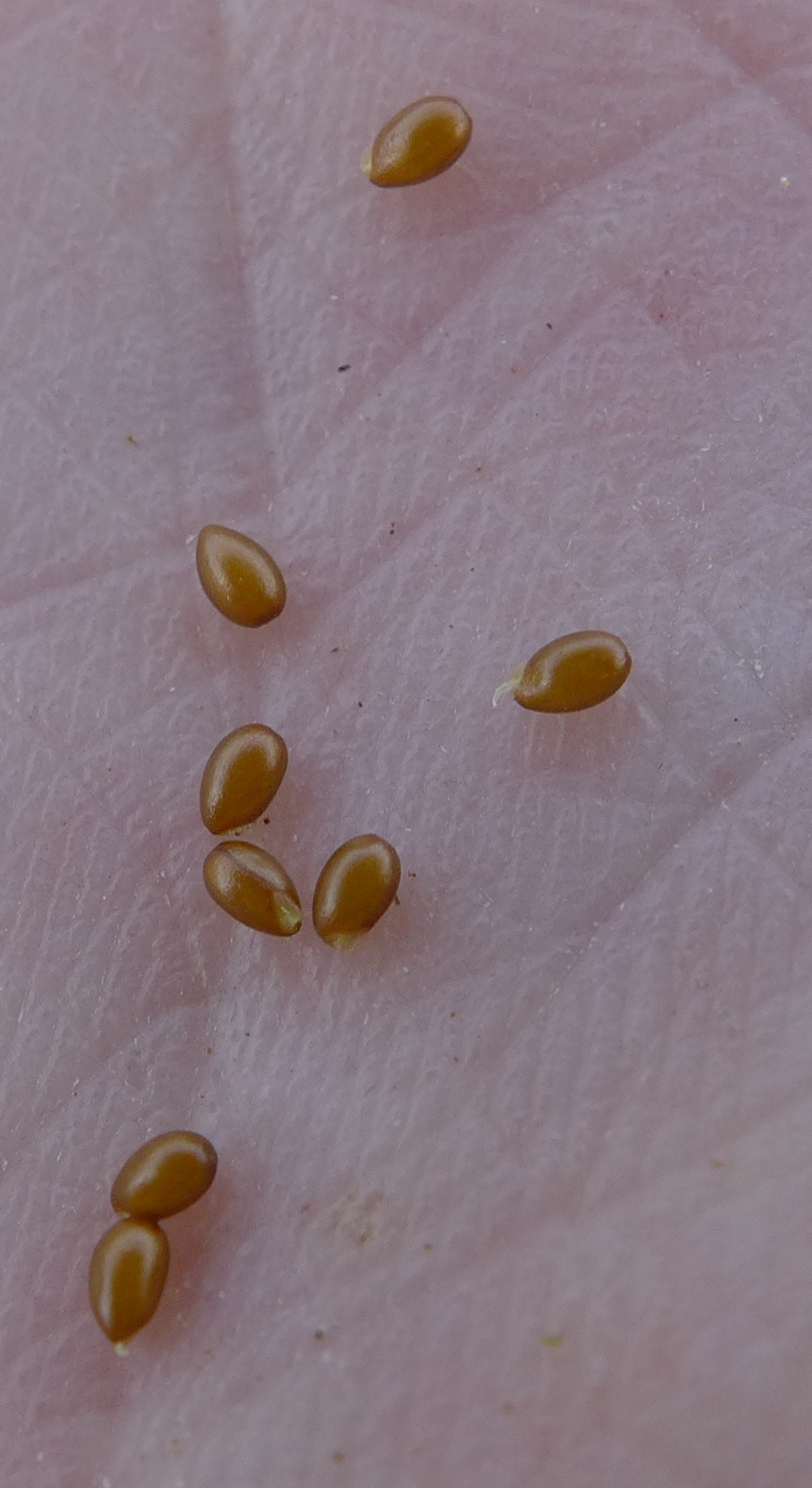 Samen eiförmig, mit kleinem Elaiosom (= Anhängsel für Ameisen)