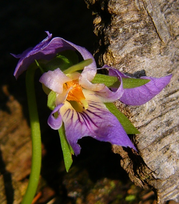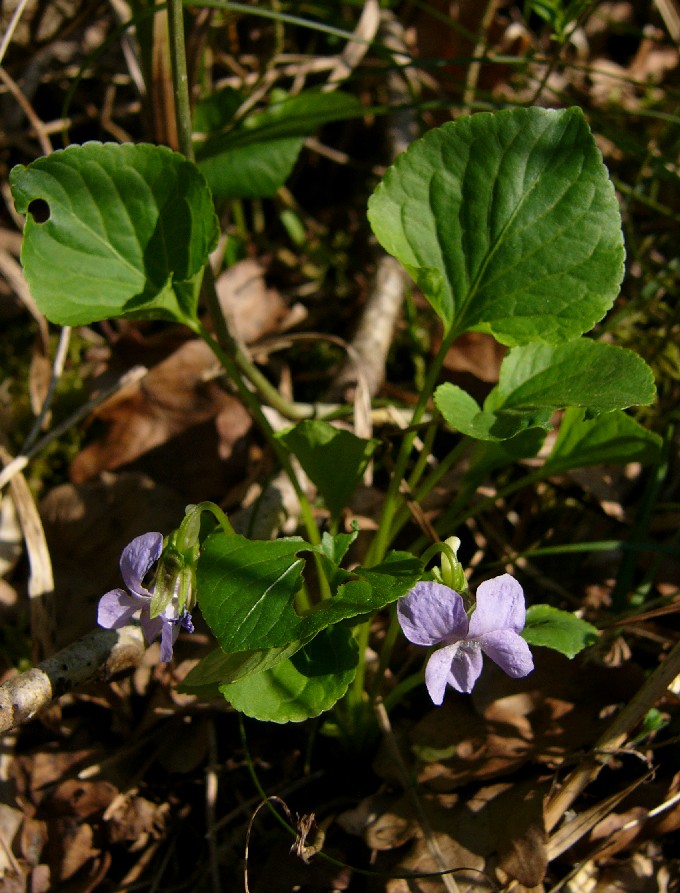 Viola - Kelchblätter spitz, Blüten +/- blauviolett, Sporn weiß, Grundblattrosette vorhanden, Nebenblätter ohne Fransen