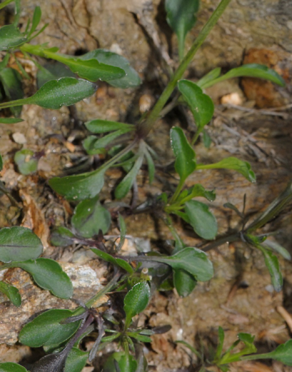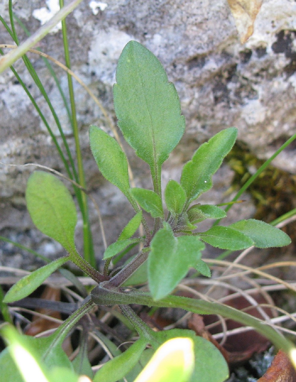Untere Blätter 15 - 30 mm lang, behaart, Blattspreite eiförmig, gekerbt, deutlich vom Blattstiel abgesetzt, Blattstiel so lang oder länger als die Blattspreite
