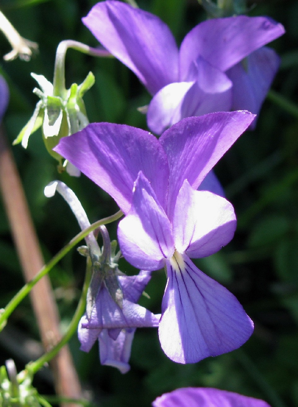 Blüten hellviolett, mit weißem Schlund, Seitliche Kronblätter aufwärts,