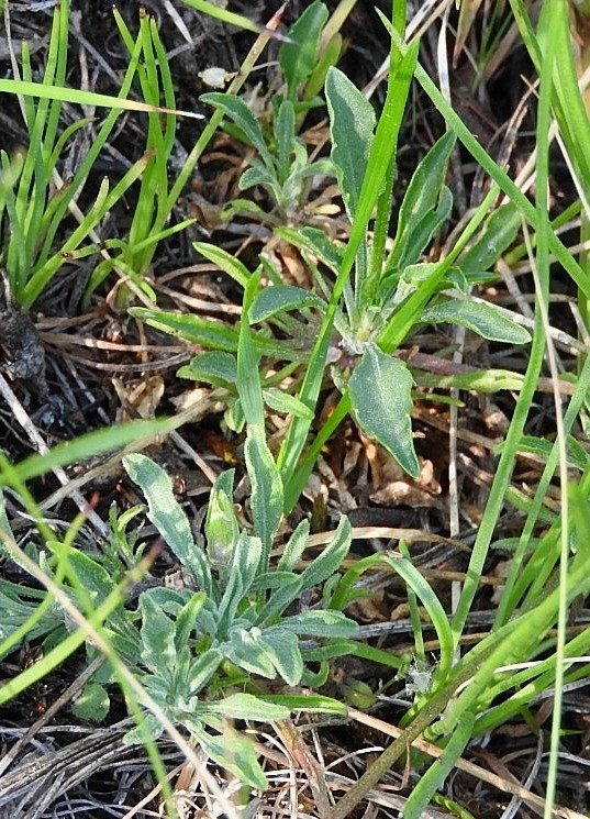 Stängelblätter 15 - 30 mm lang, 3 - 6 mm breit, Blattspreite eiförmig oder lanzettlich Spreite, dicht behaart, +/- allmählich in den Stiel übergehend, ganzrandig oder schwach gekerbt