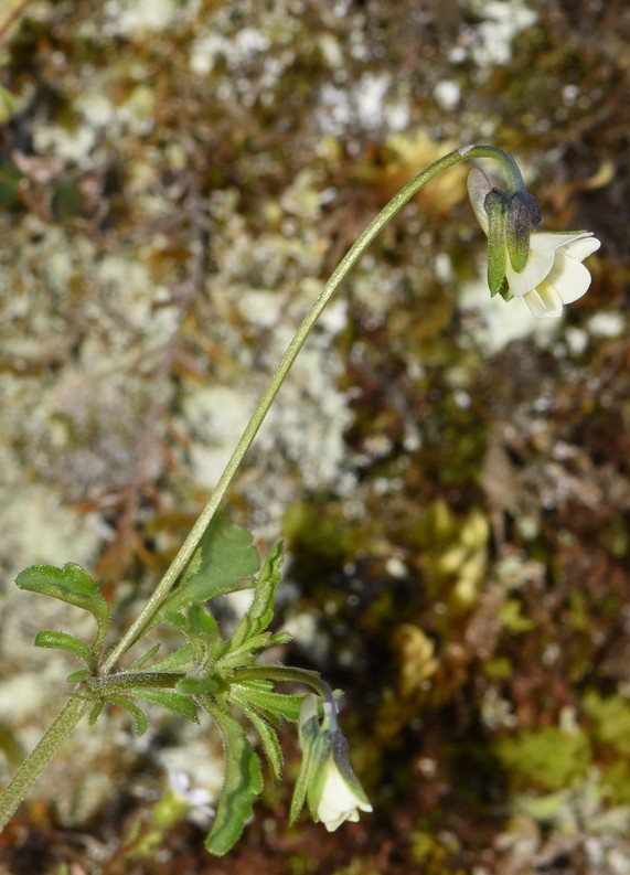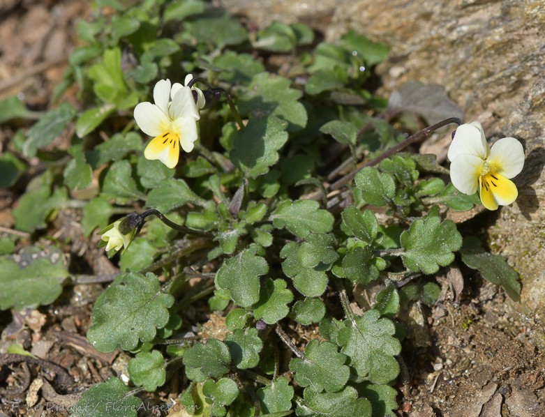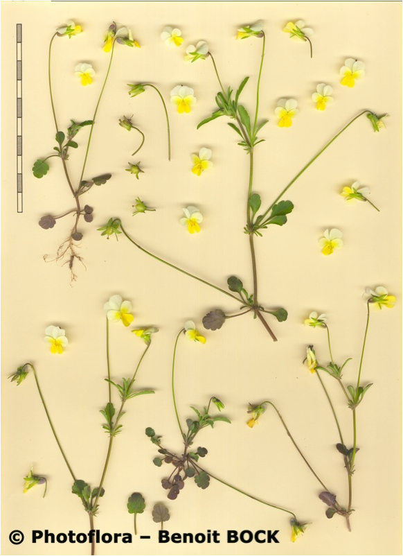 Blüten 10 - 20 mm hoch, 7 - 16 mm breit, obere und seitliche Kronblätter meist cremefarben oder bläulich, unteres Kronblatt leuchtend gelb