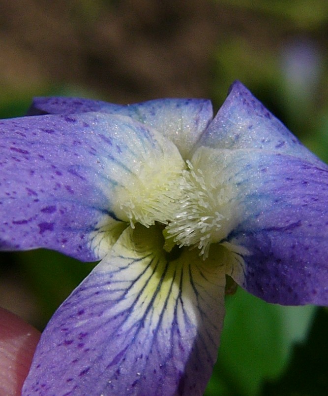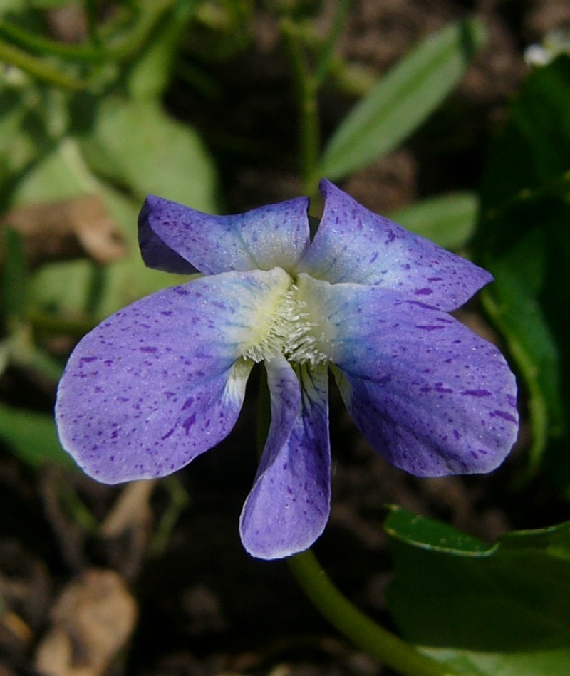 Blüten gefleckt, blaulila bis blau, mit deutlichem weißen Zentrum