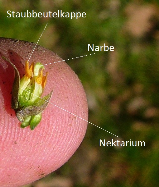 Frucht kugelig, 5 - 8 mm im Durchmesser, am Boden