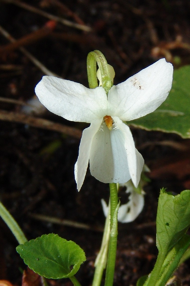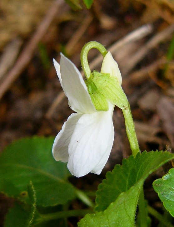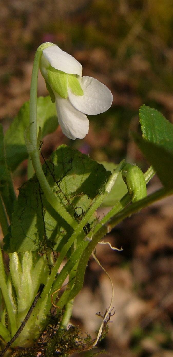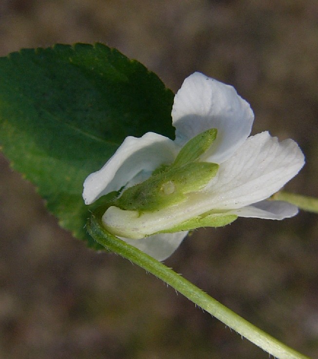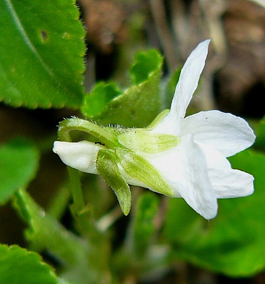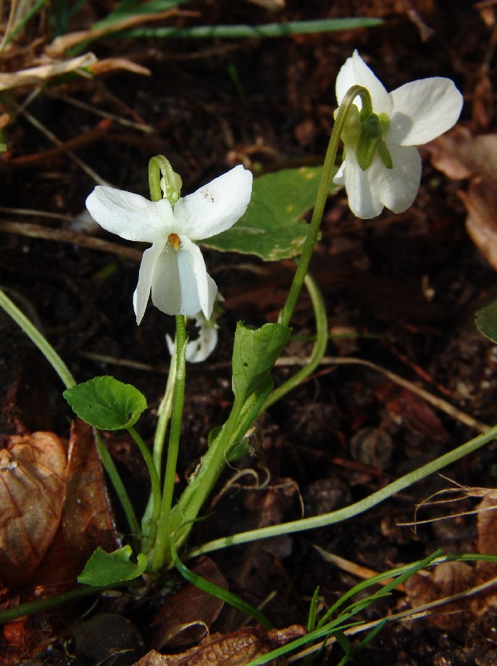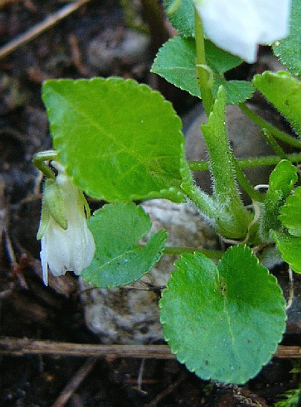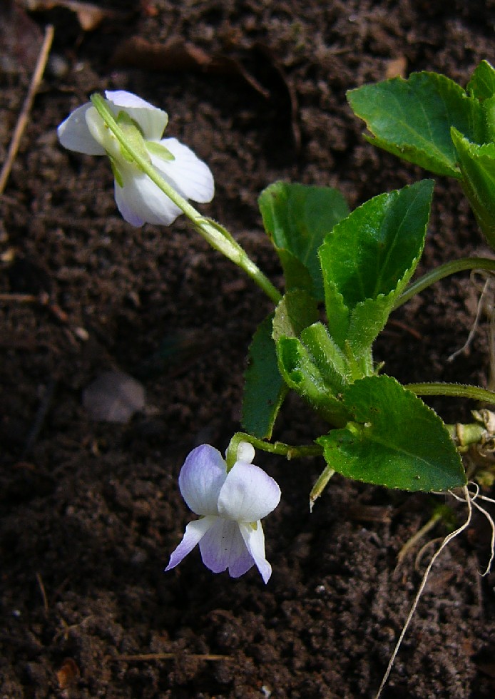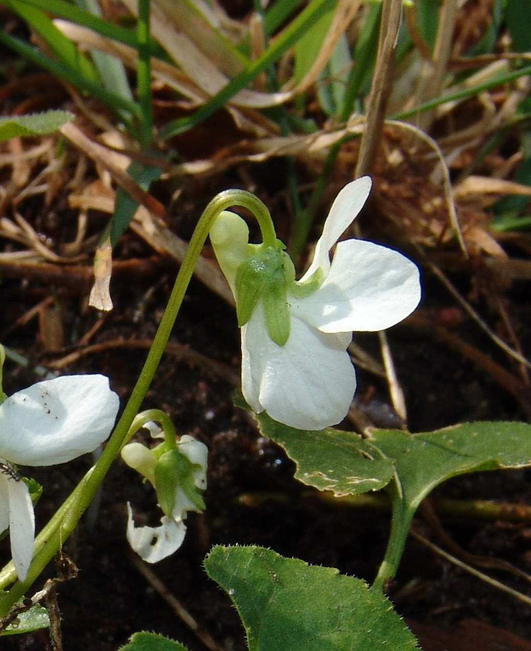 Viola - Blüten weiß, seitliche Kronblätter abwärts gerichtet, Kelchblätter stumpf