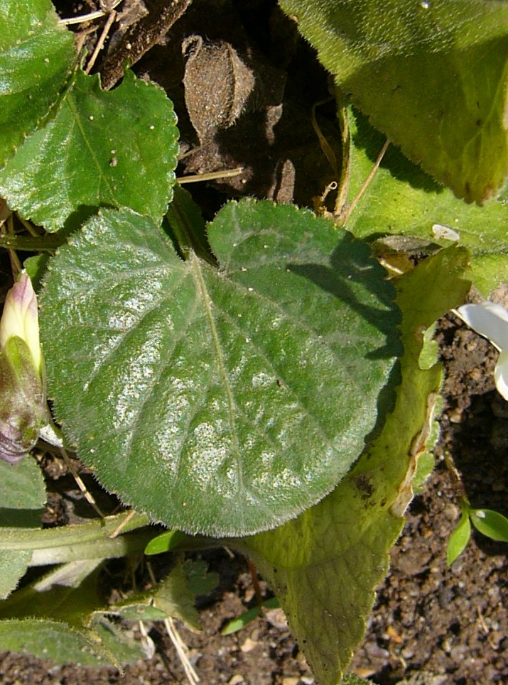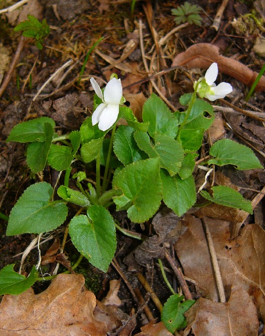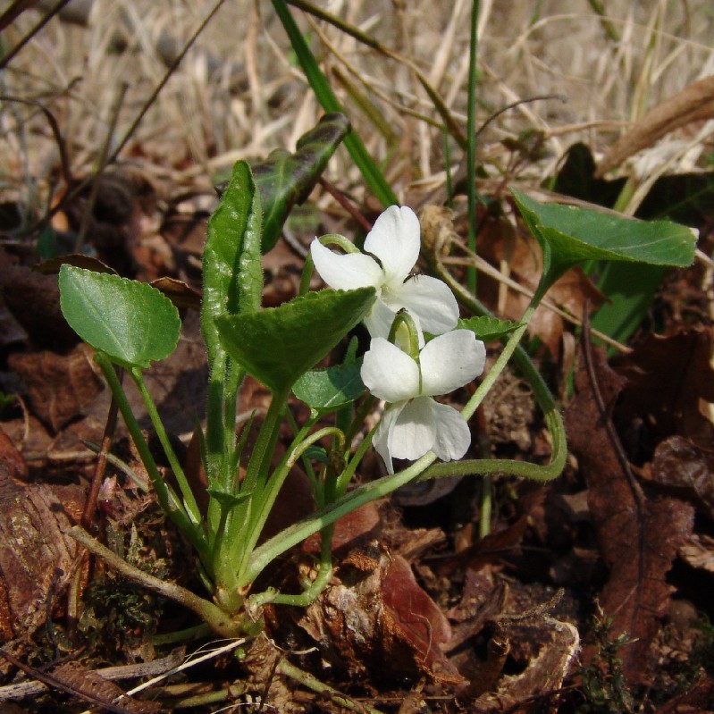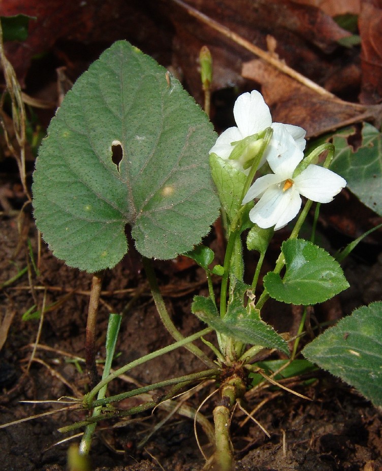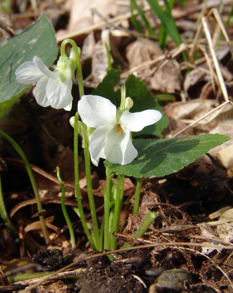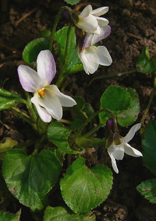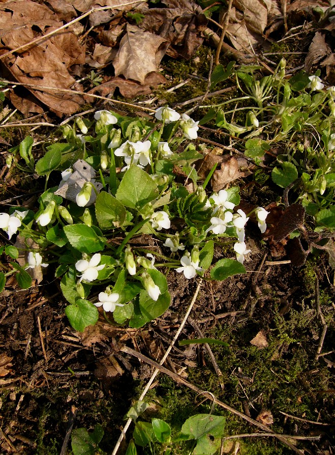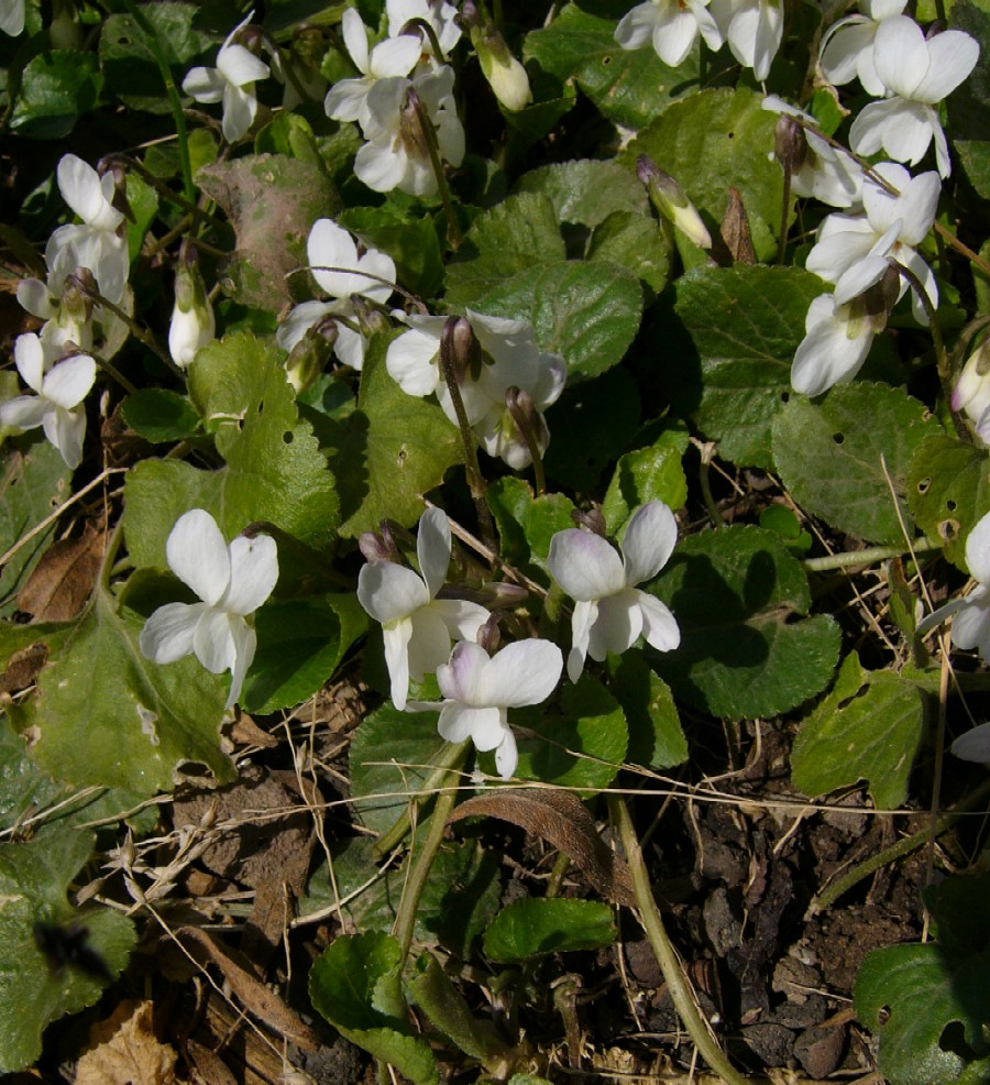 Viola - Blüten weiß, seitliche Kronblätter abwärts gerichtet, Kelchblätter stumpf