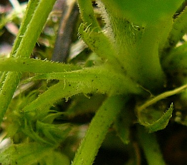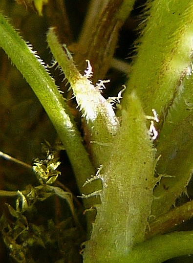 Stiel der Sommerblätter mit 0,5 - 1,2 mm langen, waagerecht abstehenden Haaren, Nebenblätter lanzettlich (2 mm breit), 4 - 8 mal so lang wie breit, Fransen ohne Wimpern