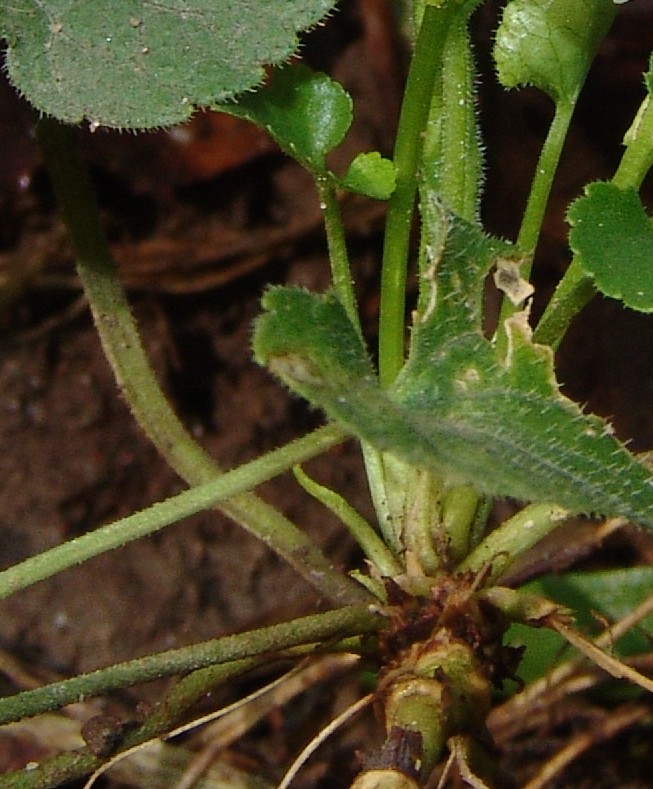 Blätter vorne spitz, 1 - 1,5 mal so lang wie breit, auf Ober- und Unterseite gleich behaart, Pflanze meist Ausläufer bildend, Ausläufer nicht wurzelnd