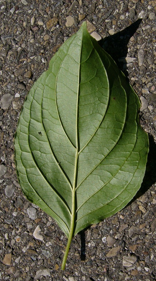 5 Blätter eiförmig, 4 - 8 cm lang, kurz zugespitzt