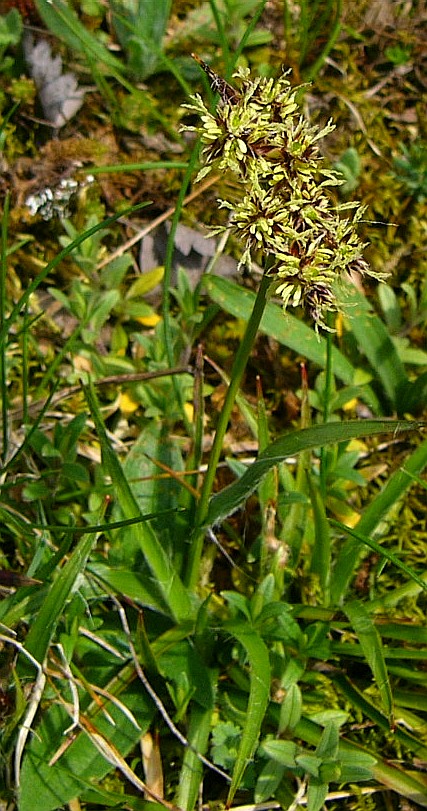 Pflanze 25 - 80 cm groß Spirre 1 - 6- köpfig Köpfe kugelig, dicht und reichblütig, Kapsel so lang wie die Perigonblätter, Blätter reitend, schwertförmig