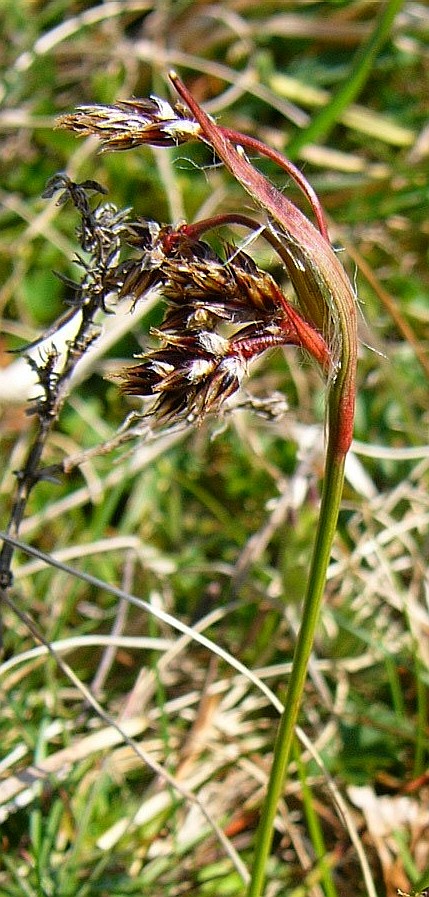 Blüten mit 6 braunen Perigonblättern Stängelblätter langhaarig > 5 |