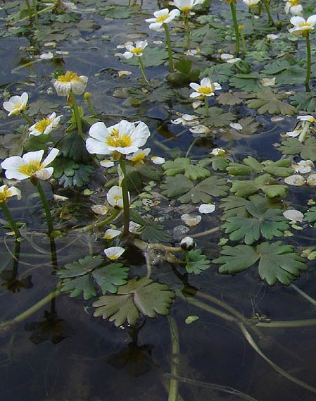 Wasserpflanzen mit schwimmenden, gelappten oder gesägten Blättern