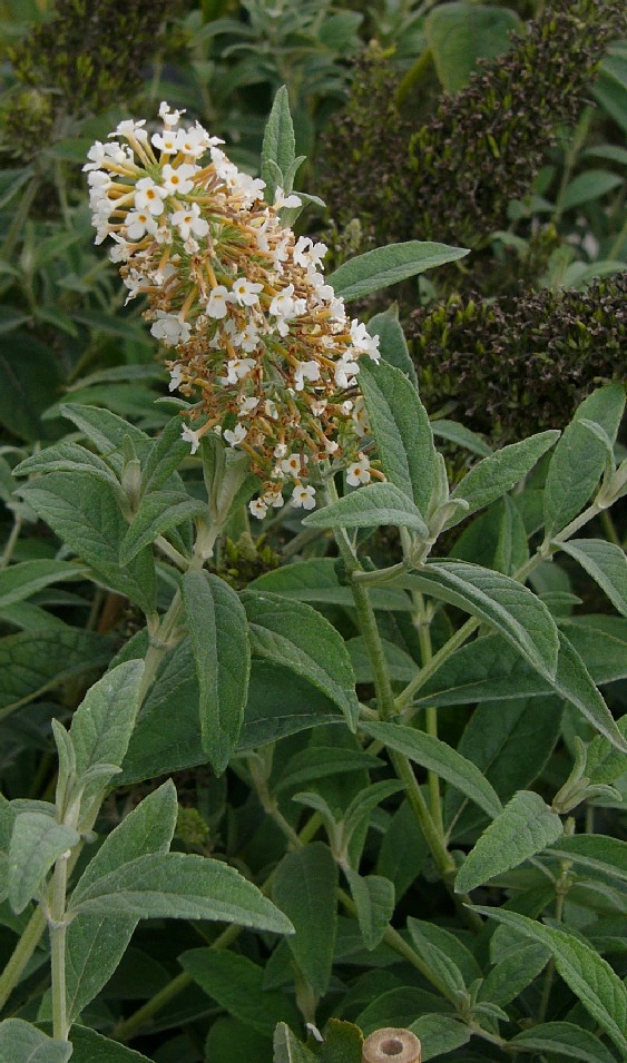 Blätter lanzettlich, deutlich gezähnt, unterseits filzig > Sommerflieder (Buddleja)