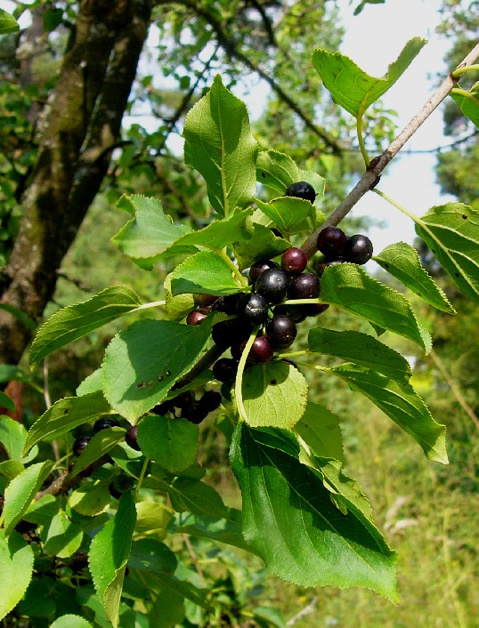 getrenntgeschlechtlich Früchte: schwarze Beeren Blattgrund symmetrisch > Kreuzdorn (Rhamnus)