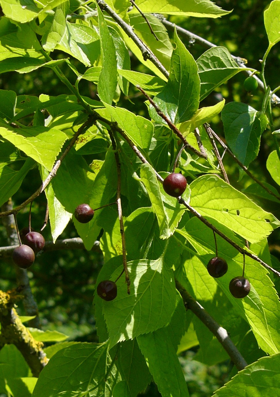 getrenntgeschlechtlich Früchte: einsamige Steinfrüchte Blattgrund asymmetrisch > Zürgelbaum (Celtis)